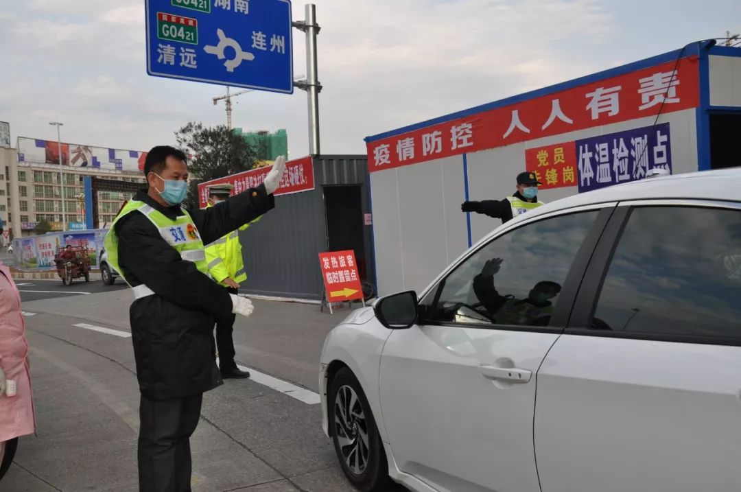 車輛從許廣高速北行連州西出口駛來(lái),身穿交通執(zhí)法制服的楊代基上前揮手示意停車,醫(yī)護(hù)人員隨即上前為駕乘人員測(cè)量體溫……從大年初一開(kāi)始,楊代基每天在崗12小時(shí),不斷重復(fù)這樣的動(dòng)作配合交警攔停車輛進(jìn)行檢查,此外,他還要負(fù)責(zé)做好往來(lái)人員登記工作。