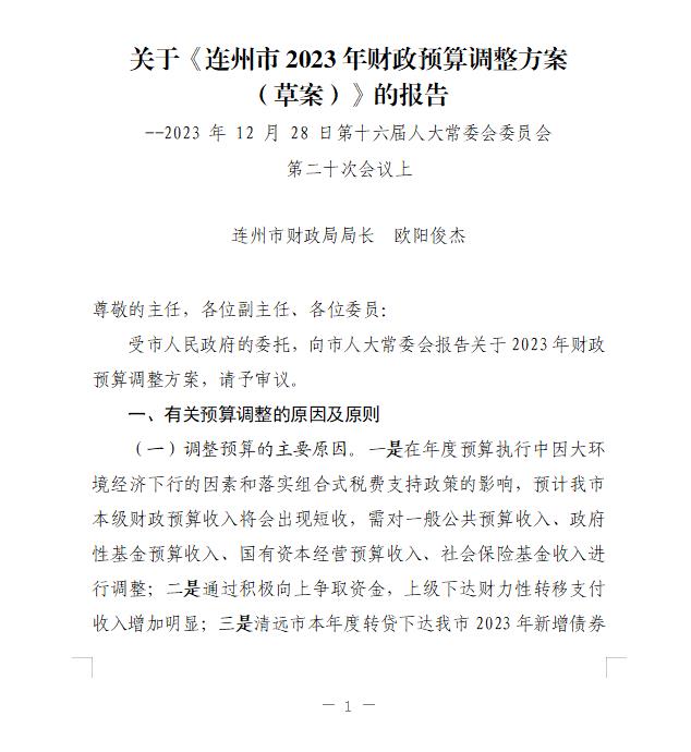 關(guān)于《連州市2023年財(cái)政預(yù)算調(diào)整方案(草案)》的報(bào)告