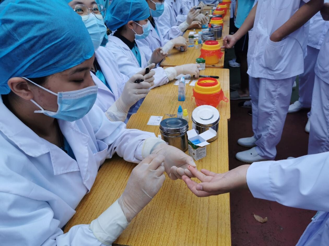 活動中,各專業(yè)學(xué)生進(jìn)行了專業(yè)技能展示,以扎實的功底和嫻熟的操作技能,展示自己所學(xué)成果。其中,護(hù)理和助產(chǎn)專業(yè)展示了輪椅轉(zhuǎn)運、外科包扎,醫(yī)學(xué)檢驗技術(shù)專業(yè)展示了ABO血型鑒定,農(nóng)村醫(yī)學(xué)和中藥專業(yè)展示了無菌手術(shù)穿脫和中藥調(diào)劑,中醫(yī)康復(fù)和中醫(yī)美容進(jìn)行了拔火罐、推拿和面部護(hù)理技能展示,口腔專業(yè)進(jìn)行了全口義齒排牙的技能展示。