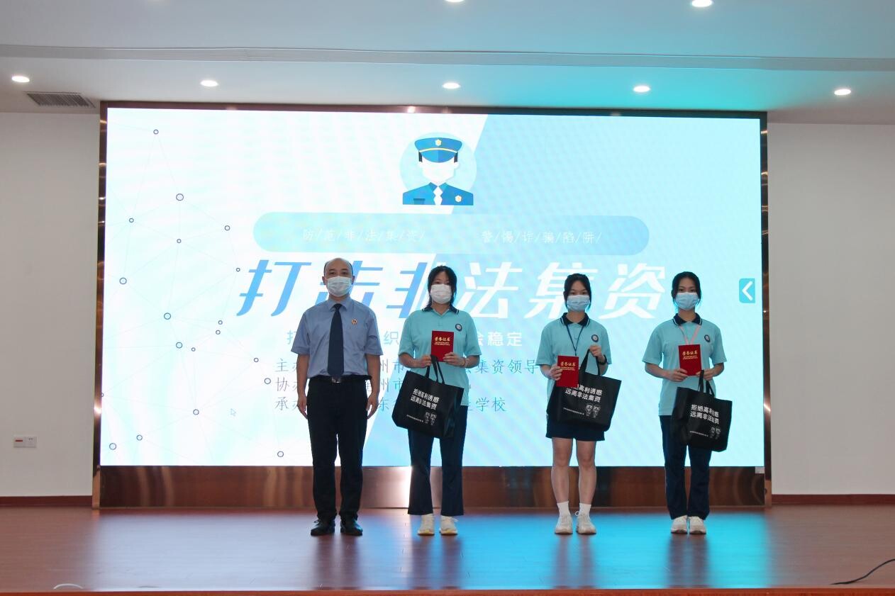 為了營造良好的防范非法金融活動輿論氛圍,提高學生對非法金融活動的認識和抵制能力,2022年6月29日,由連州市處置非法集資領導小組主辦、連州市教育局協(xié)辦的2022年防范非法集資宣傳月活動暨“守好錢袋子·護好幸福家”主題繪畫比賽頒獎儀式在連州衛(wèi)生學校舉行。連州市檢察院黨組成員、副檢察長、連州衛(wèi)校法治副校長潘文杰、連州市教育局董繩祥主任、連州市人民法院法官助理梁舒恬、連州衛(wèi)校副校長唐英輝出席活動。