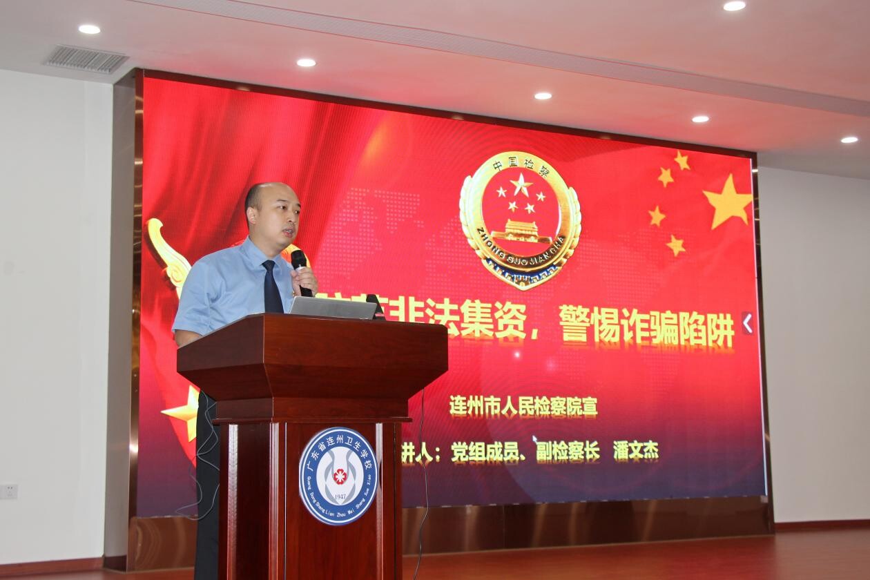 “防范非法集資,警惕詐騙陷阱?!边B州市檢察院黨組成員、副檢察長、連州衛(wèi)校法治副校長潘文杰在集資詐騙罪的基本概念、集資詐騙罪的客觀要件、集資詐騙罪的體現(xiàn)以及案例分析四個方面為同學們詳細地闡述了集資詐騙罪的相關內(nèi)容。并提醒我們在生活中參與集資的時候要注意辨識合法融資與非法集資,依法理性開展金融投資活動。
