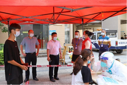 截至715日三天的時(shí)間,連州衛(wèi)生學(xué)校共派出505人次參加志愿服務(wù)工作,其中包括黨員教師、飯?zhí)寐毠?、生活老師。他們頂著烈日,即使最高溫度達(dá)39℃,也無怨無悔地忙碌在核酸檢測(cè)一線。