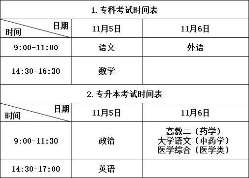 4、考試時間: 2022年11月5日至6日統(tǒng)考,考試科目安排如下: