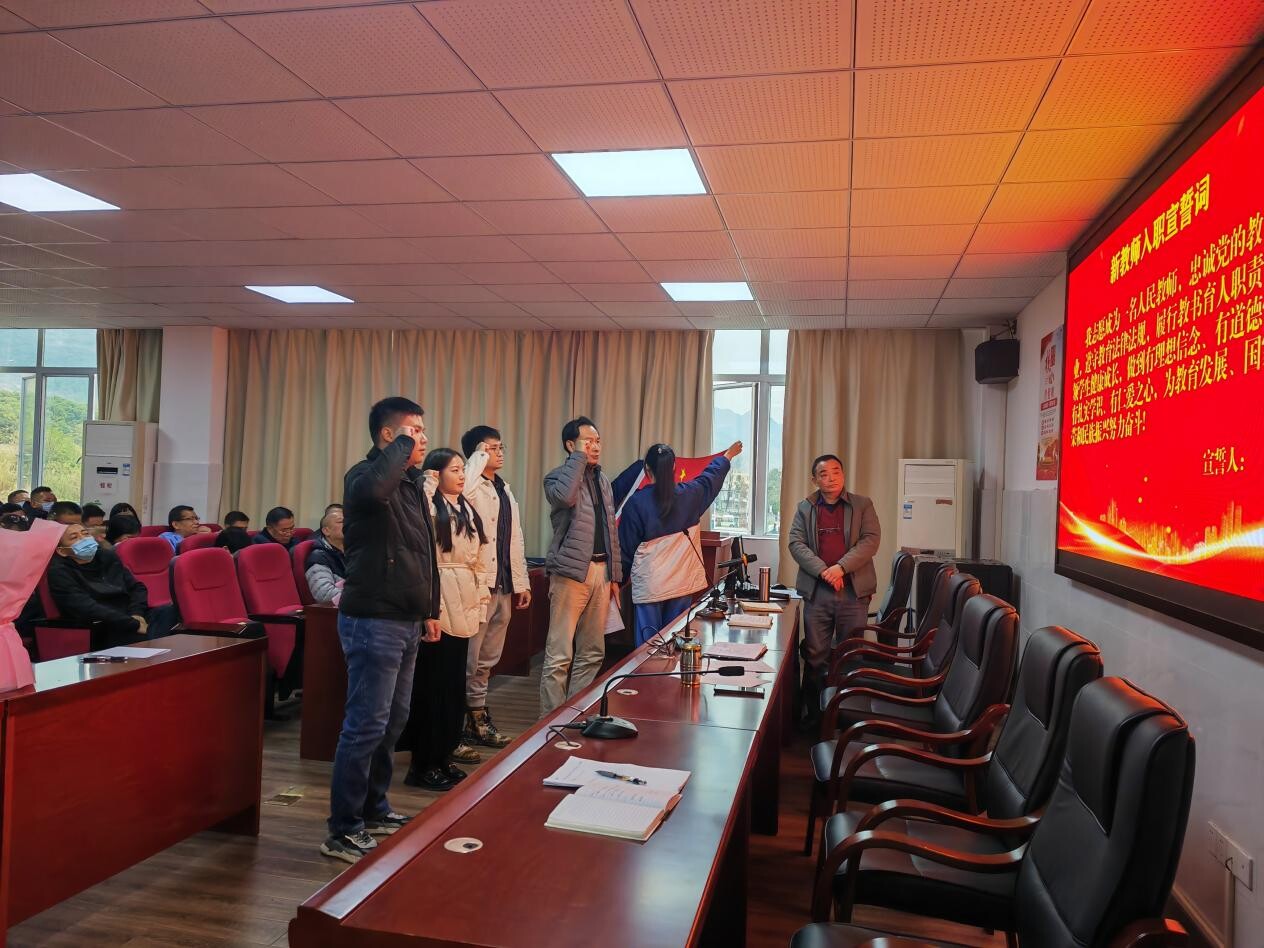 李偉奇監(jiān)誓,陳卓勛領(lǐng)誓,三位新老師入職宣誓