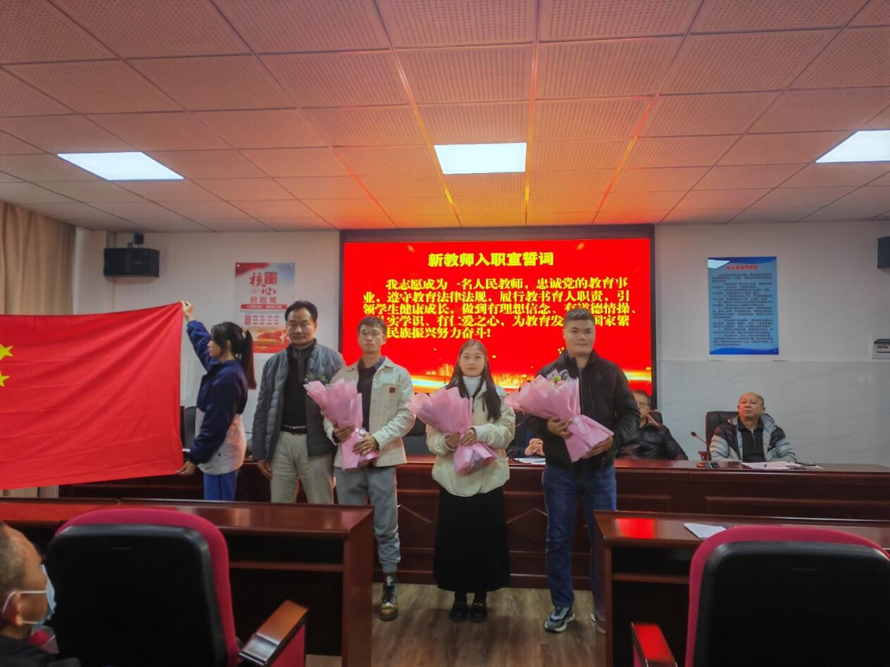 接著,陳卓勛副校長為新教師致歡迎詞,緊接著舉行新教師入職宣誓儀式,由李偉奇書記監(jiān)誓,陳卓勛副校長領(lǐng)誓,鐘彥文、唐祖梅、蘇墉弘三位新教師面向國旗,莊嚴宣誓。活動中學(xué)校工會為每位新教師贈送了精心準備的入職鮮花,祝愿老師們都能從“新”出發(fā),綻放芳華,一路繁花似錦!最后陳卓勛副校長對新老師提出三點要求:一是對待自身,要轉(zhuǎn)變角色,言行嚴格自律,做好榜樣示范;二是對待學(xué)生,要嚴管厚愛,加強理想教育,激勵學(xué)生成長進步;三是對待教學(xué),要認真?zhèn)湔n,深入鉆研,虛心學(xué)習(xí),善于借鑒,在教學(xué)事業(yè)上不斷成長進步,為學(xué)??焖侔l(fā)展貢獻一份力量。