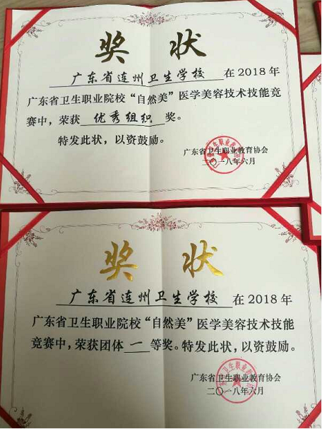 連州衛(wèi)校喜獲2018年廣東省衛(wèi)生職業(yè)院?!白匀幻馈贬t(yī)學(xué)美容技術(shù)技能競(jìng)賽一等獎(jiǎng)