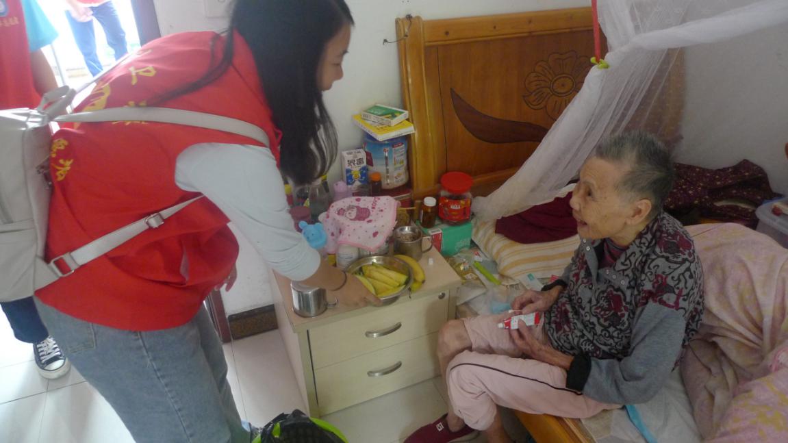 黨團員把水果帶上寢室送給老人們