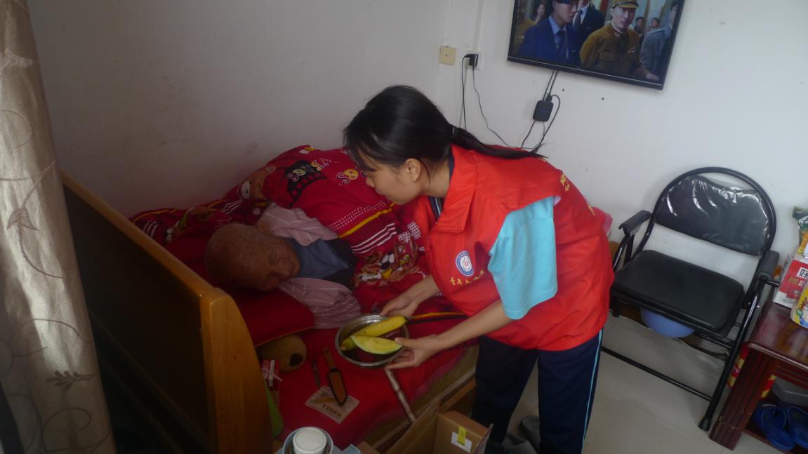 黨員陳冬冬同志帶領團員為老人準備水果