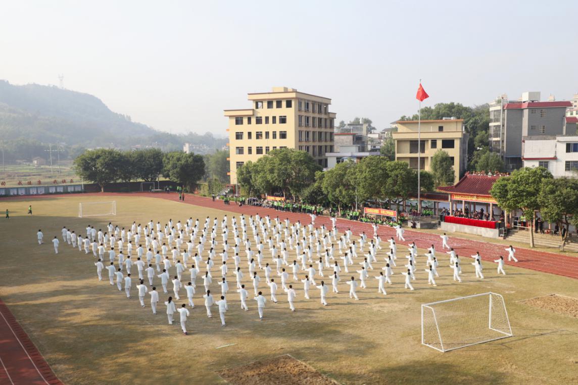 全校近40個班級方陣參加本次運(yùn)動會。運(yùn)動會開幕式上舉行了連州衛(wèi)校的特色表演——太極拳表演和韻律操表演。四百多名學(xué)生統(tǒng)一服裝,手執(zhí)紅扇,齊跳《弟子規(guī)韻律操》;太極拳表演上,同學(xué)們踏著韻律節(jié)拍,整齊劃一的動作,剛?cè)岵?jì),舞出中華民族之精魄。