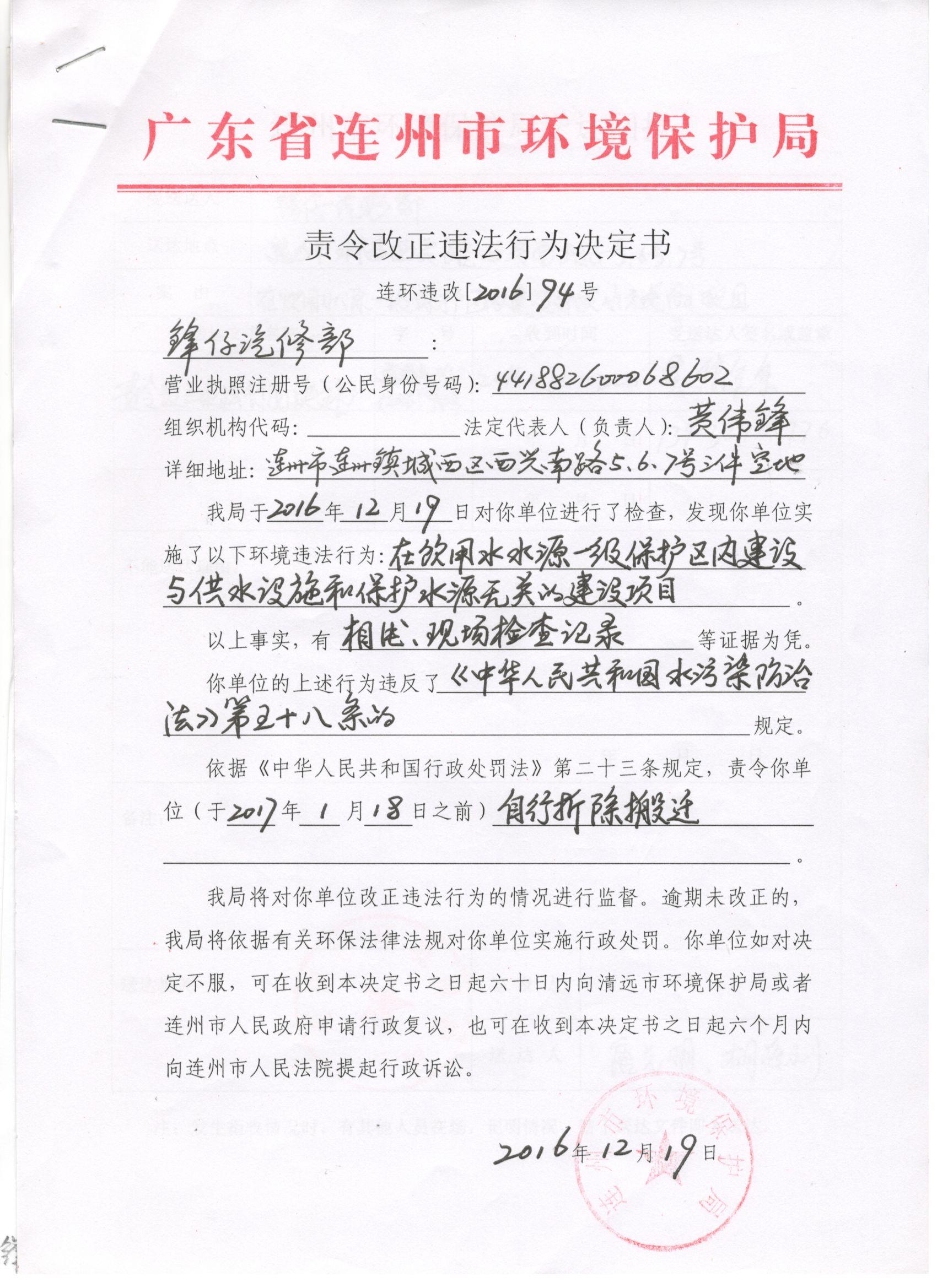 連環(huán)違改字[2016]94號