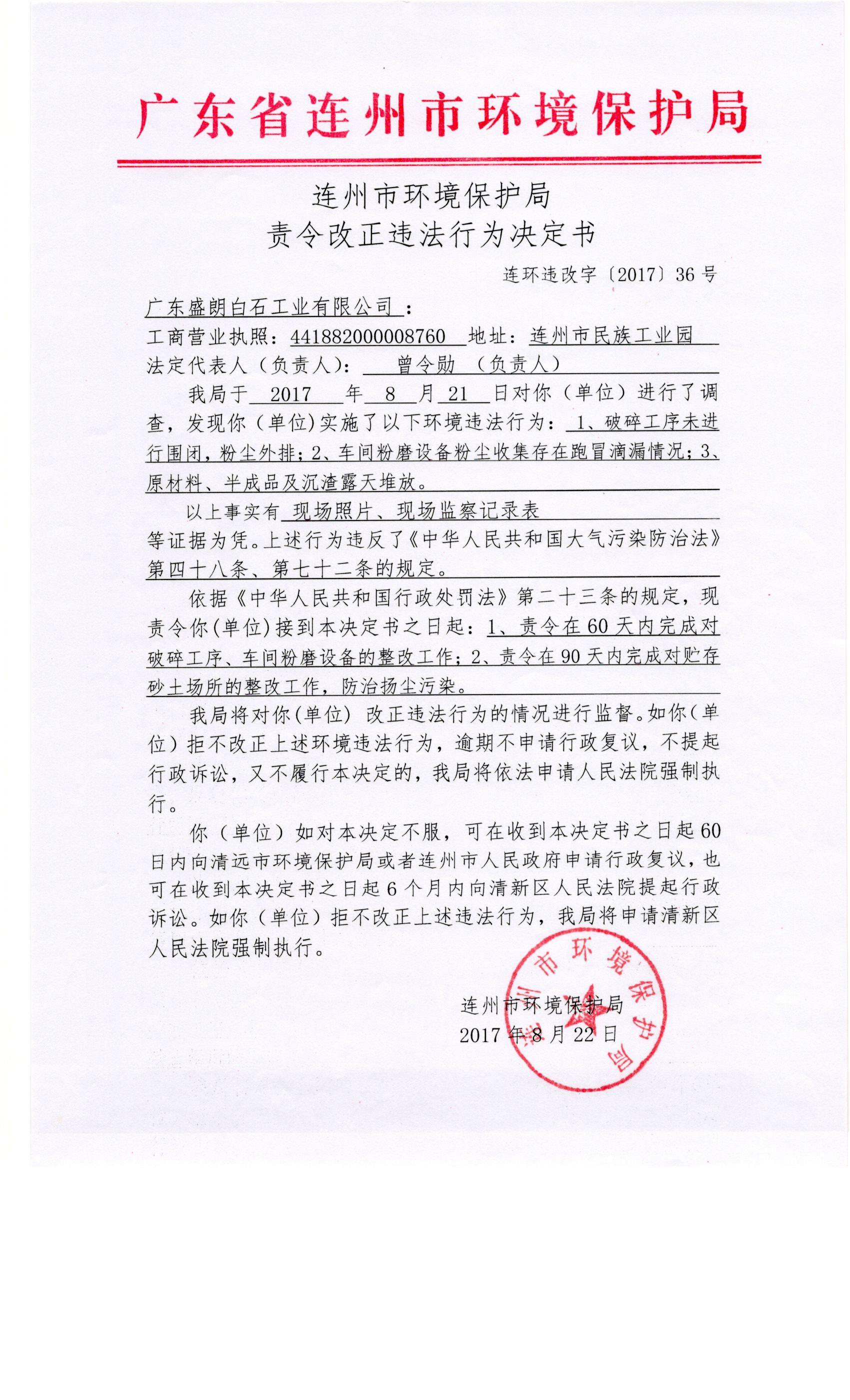 連環(huán)違改字[2017]36號(hào)