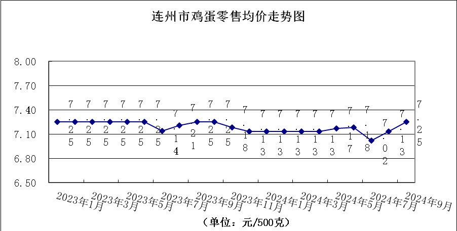 蛋類雞蛋平均零售價格為7.25元/500克,環(huán)比升1.68%。鴨蛋平均零售價格為8.85元/500克,環(huán)比升2.55%。