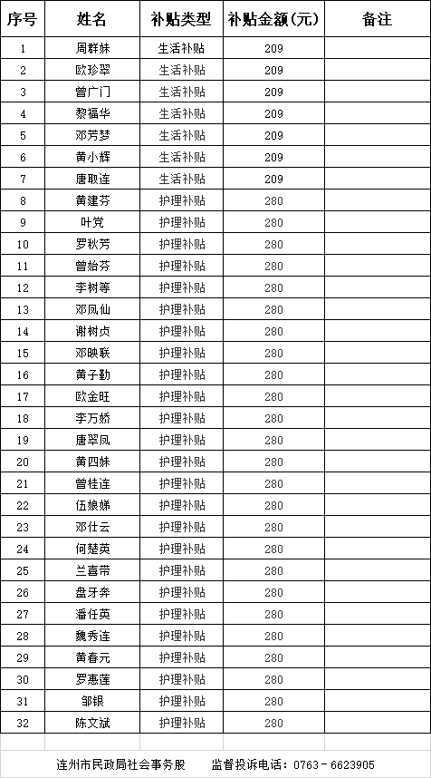 連州市2025年3月新增殘疾人兩項(xiàng)補(bǔ)貼名單