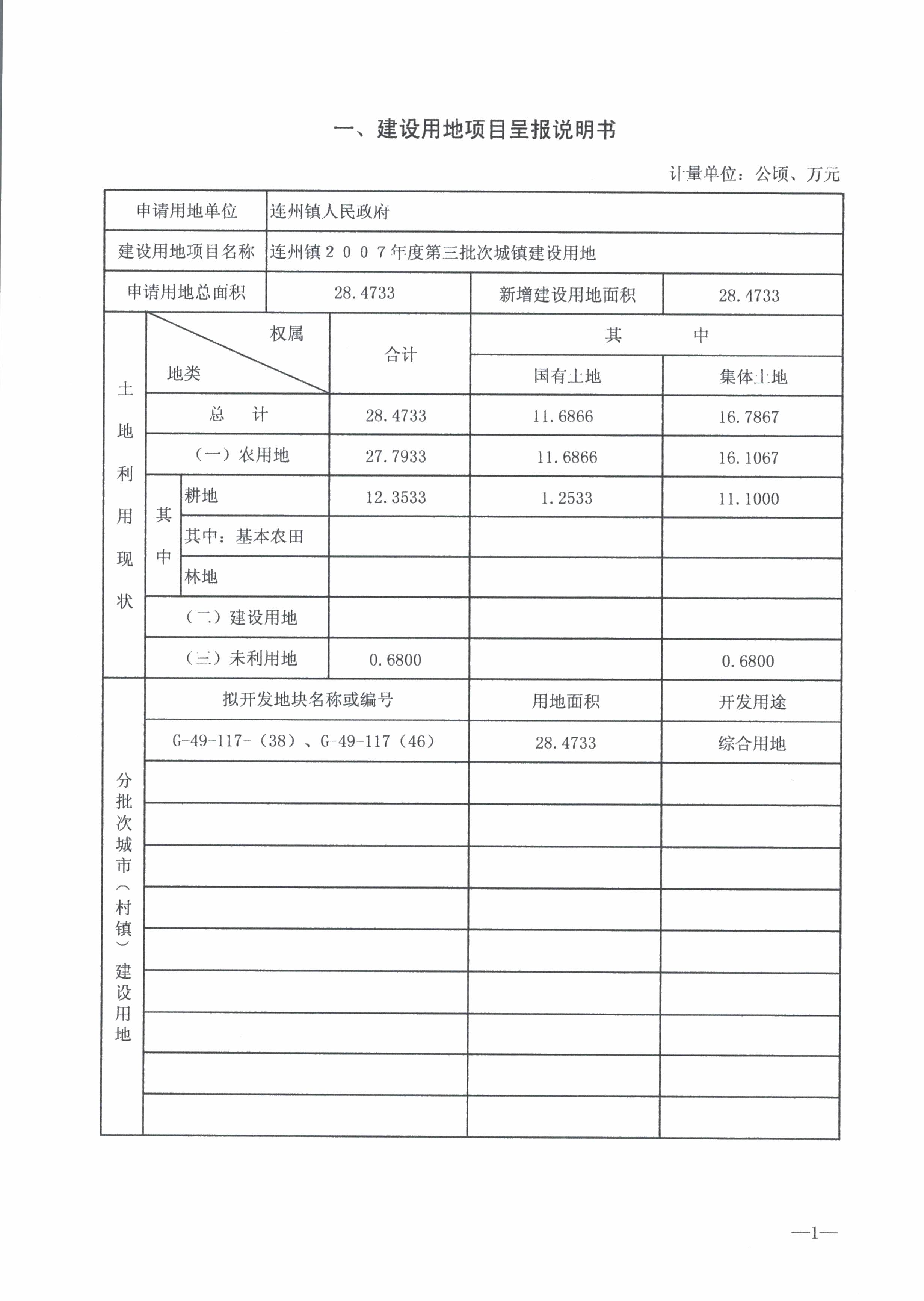 關(guān)于連州市連州鎮(zhèn)2007第三批次城鎮(zhèn)建設(shè)用地的公告信息(一書四方案)