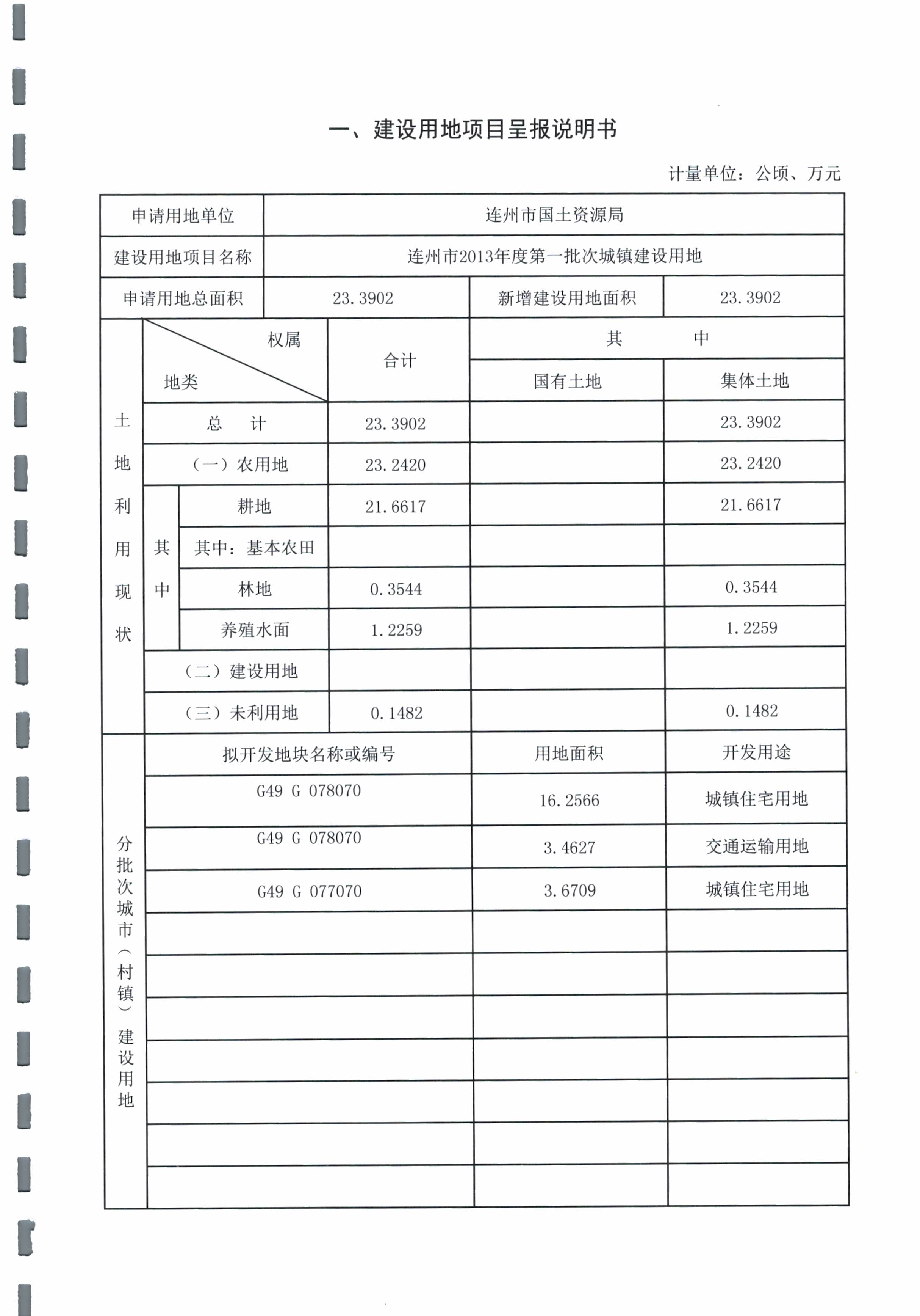 連州市2013年度第一批次城鎮(zhèn)建設(shè)用地公告信息(一書四方案)