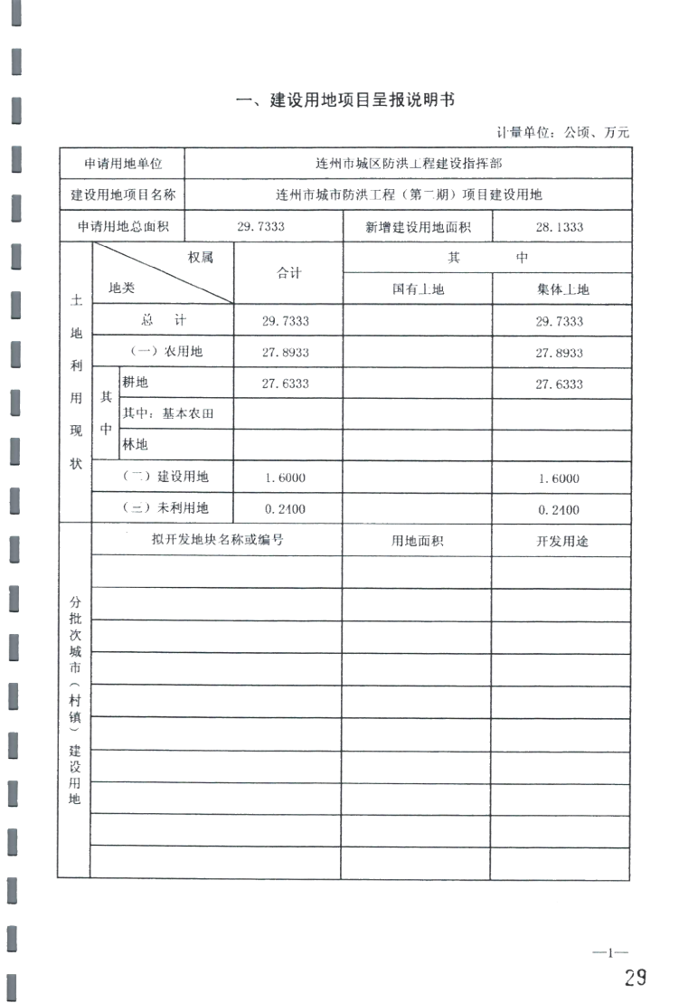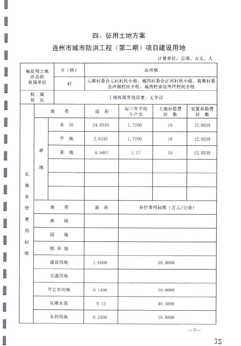 連州市城區(qū)防洪建設(shè)工程二期項(xiàng)目建設(shè)用地(一書(shū)四方案)