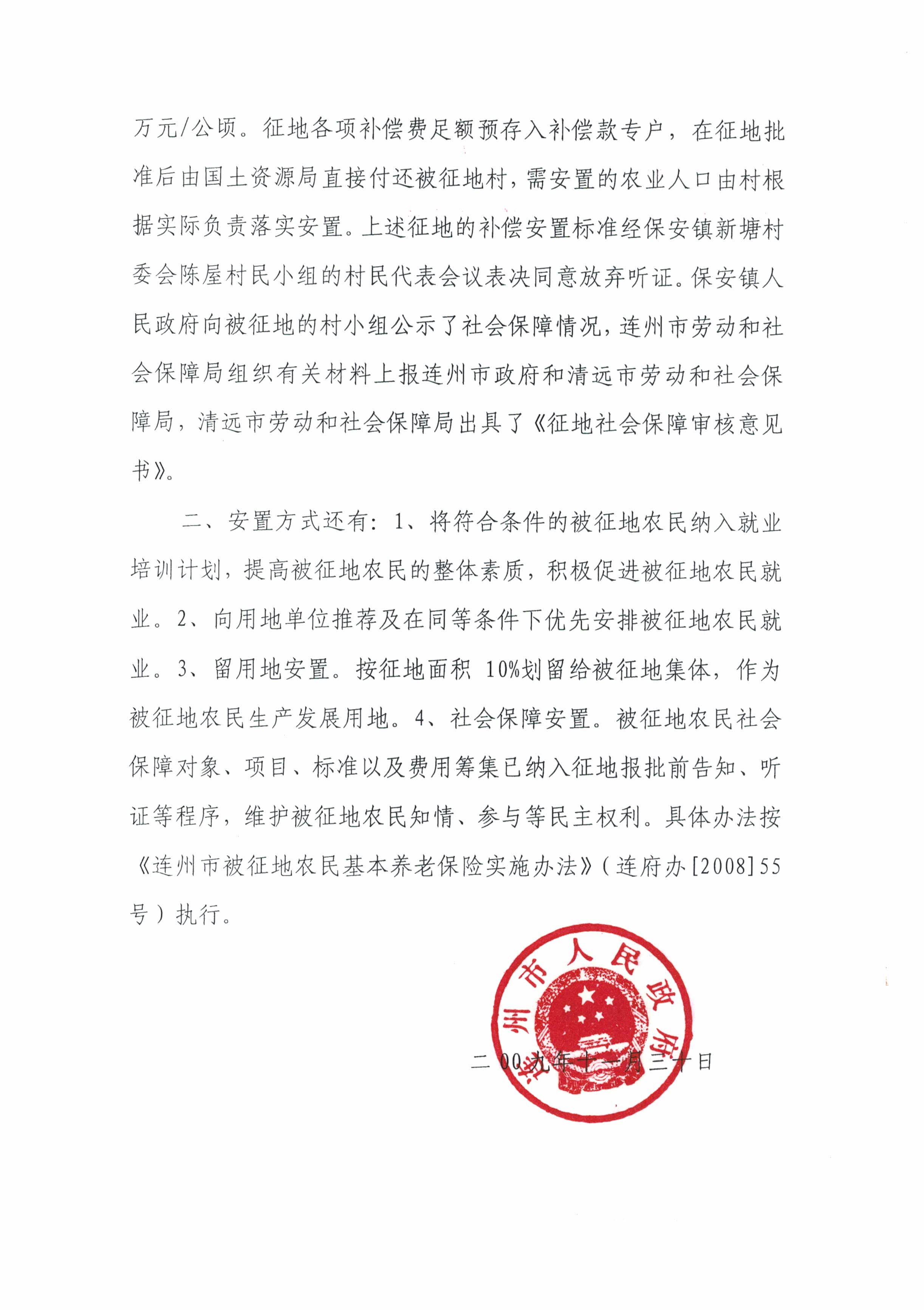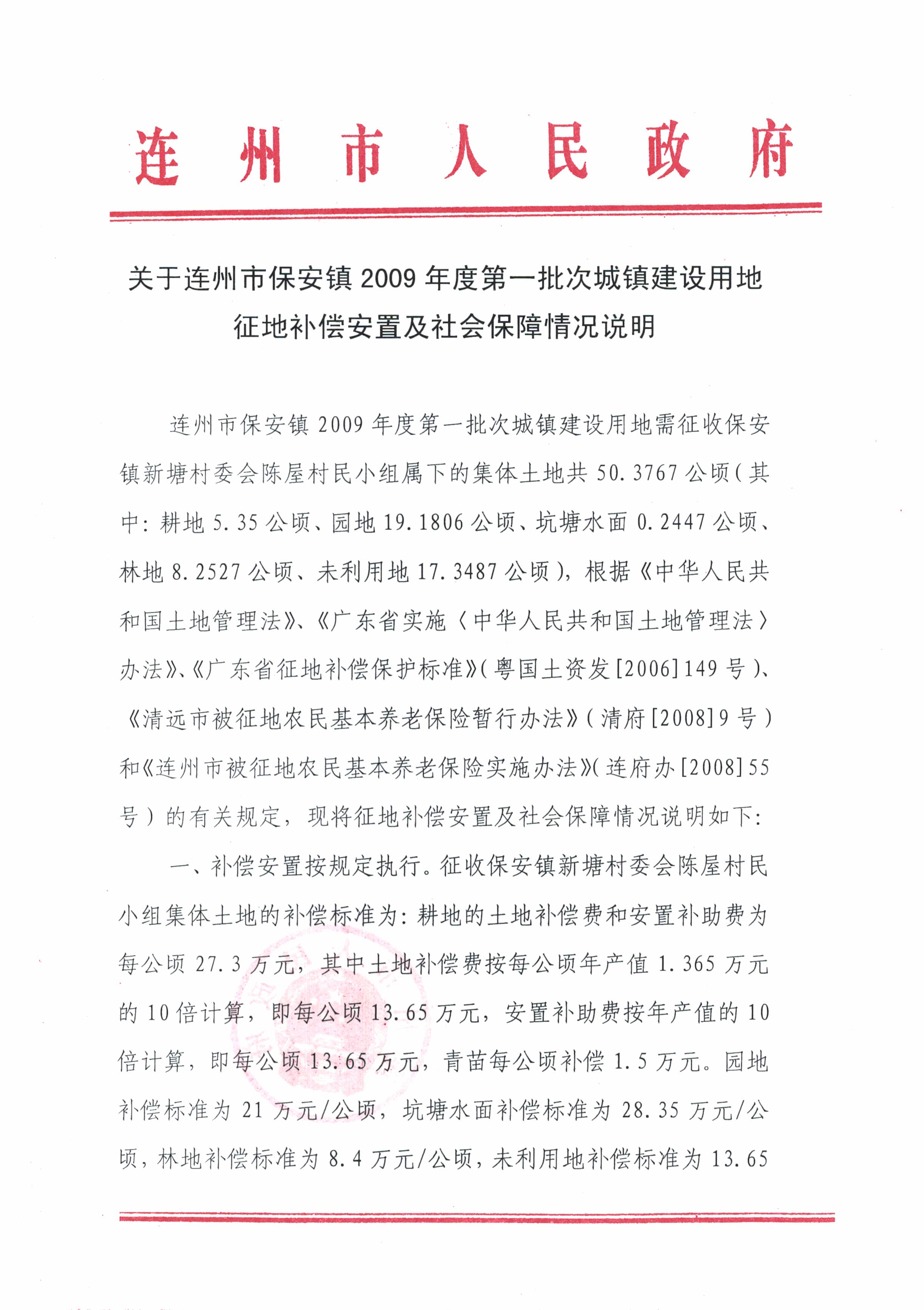 連州市保安鎮(zhèn)2009年度第一批次城鎮(zhèn)建設(shè)用地補償安置方案公告