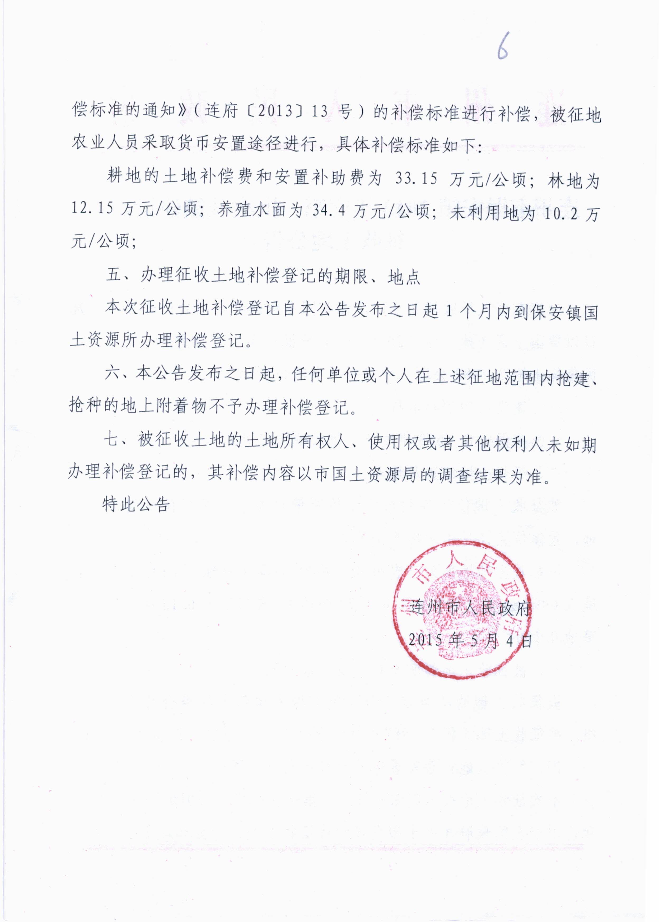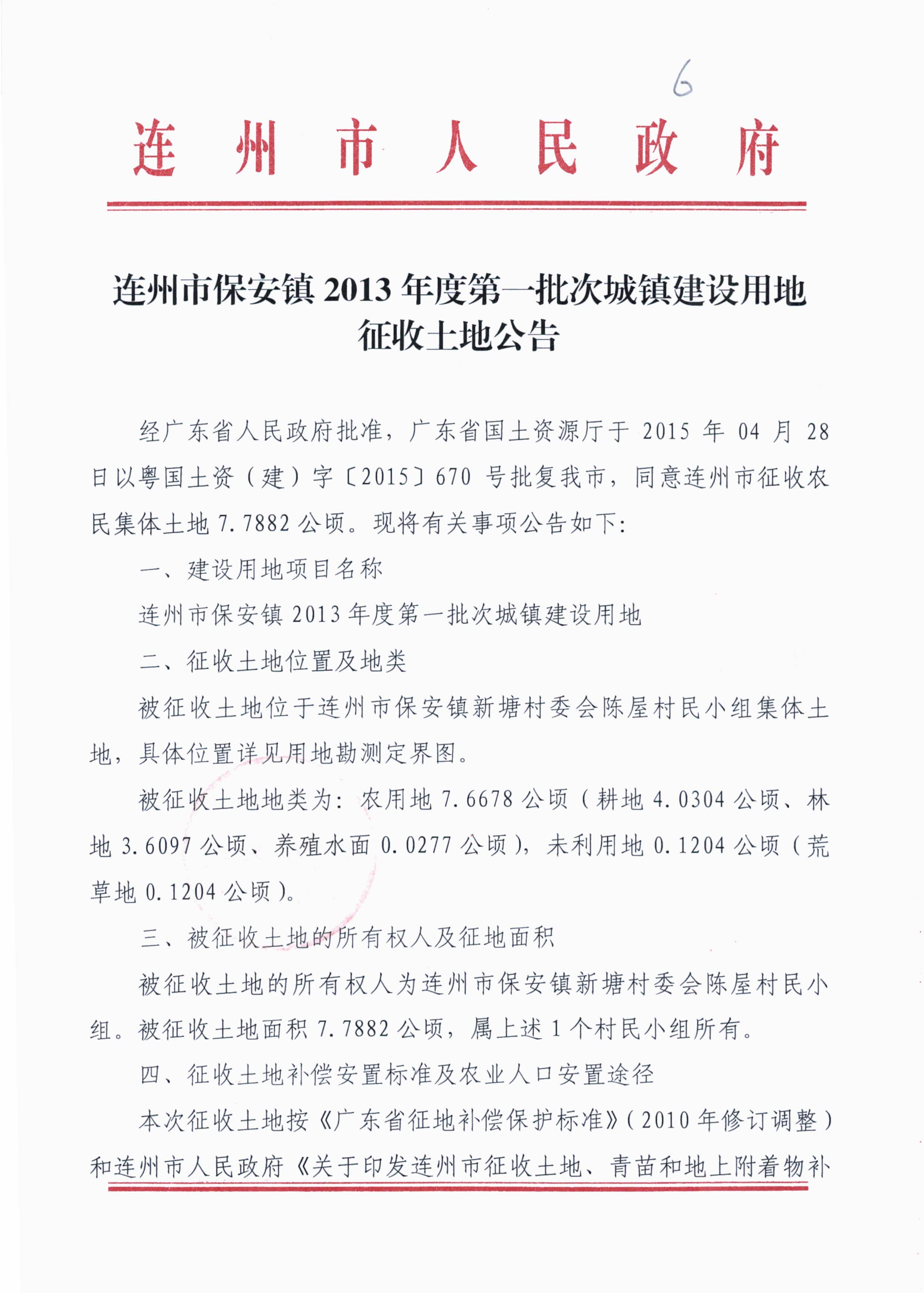 連州市保安鎮(zhèn)2013年度第一批次城鎮(zhèn)建設(shè)用地征收土地公告