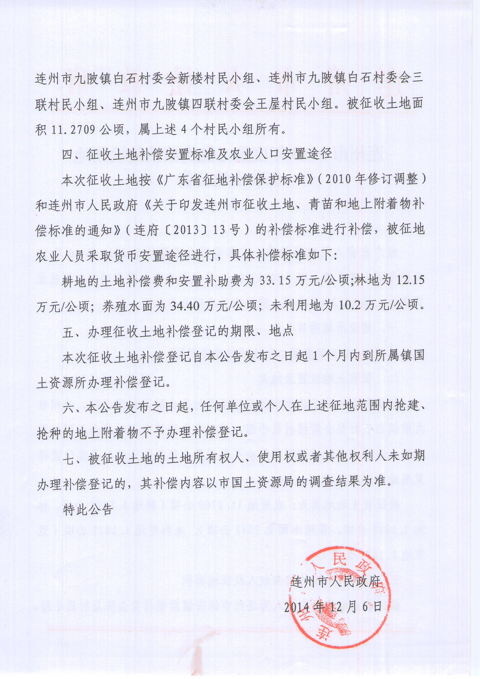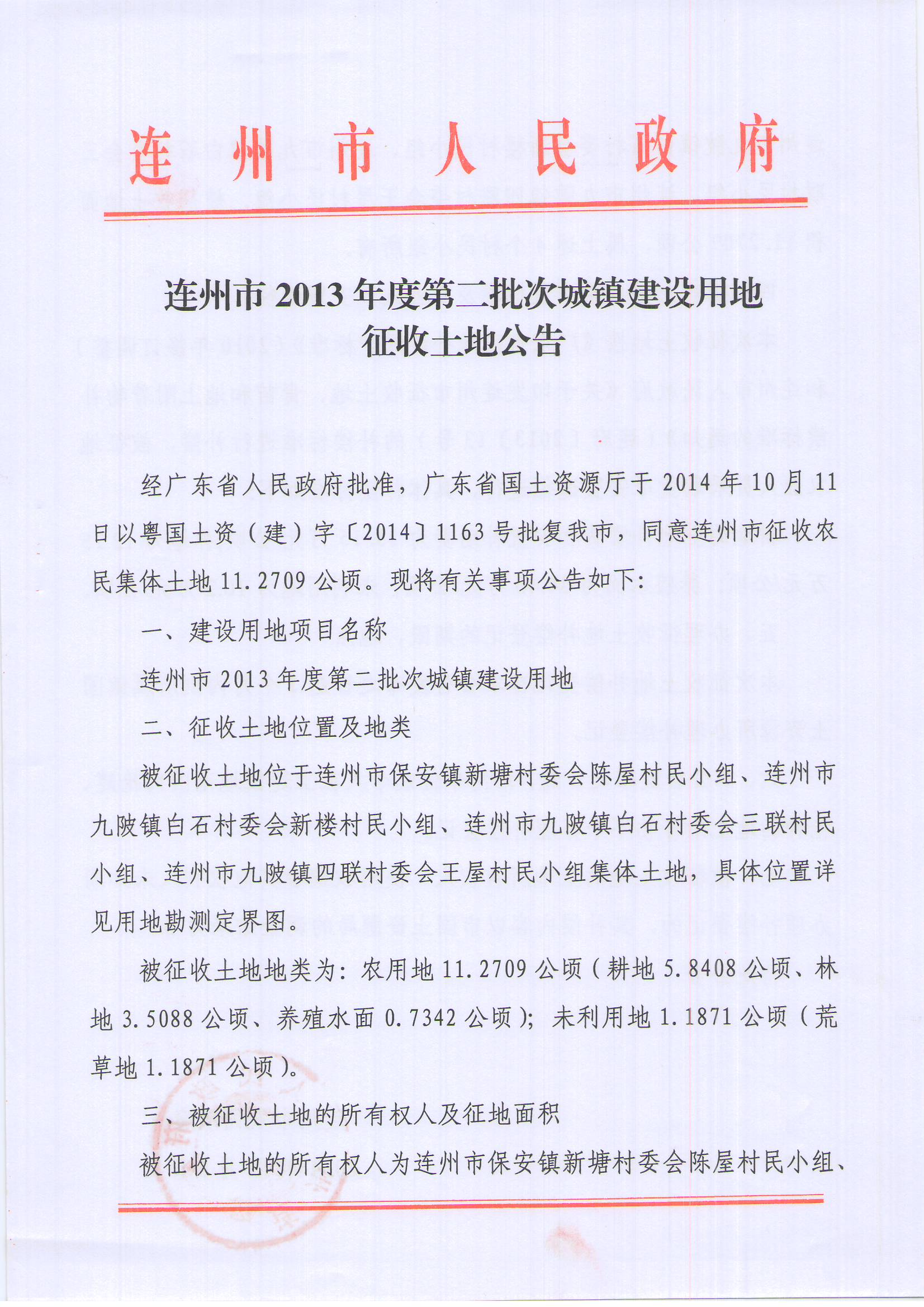連州市2013年度第二批次城鎮(zhèn)建設(shè)用地征收土地公告