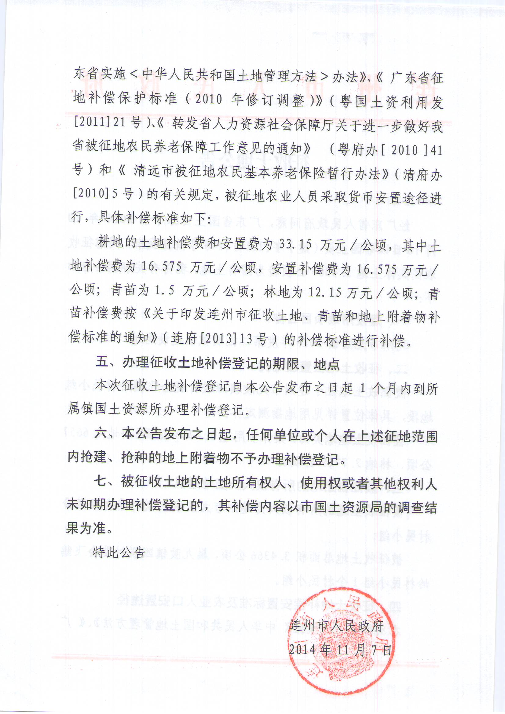 連州市九陂鎮(zhèn)2013年度第二批次城鎮(zhèn)建設(shè)用地征收土地公告