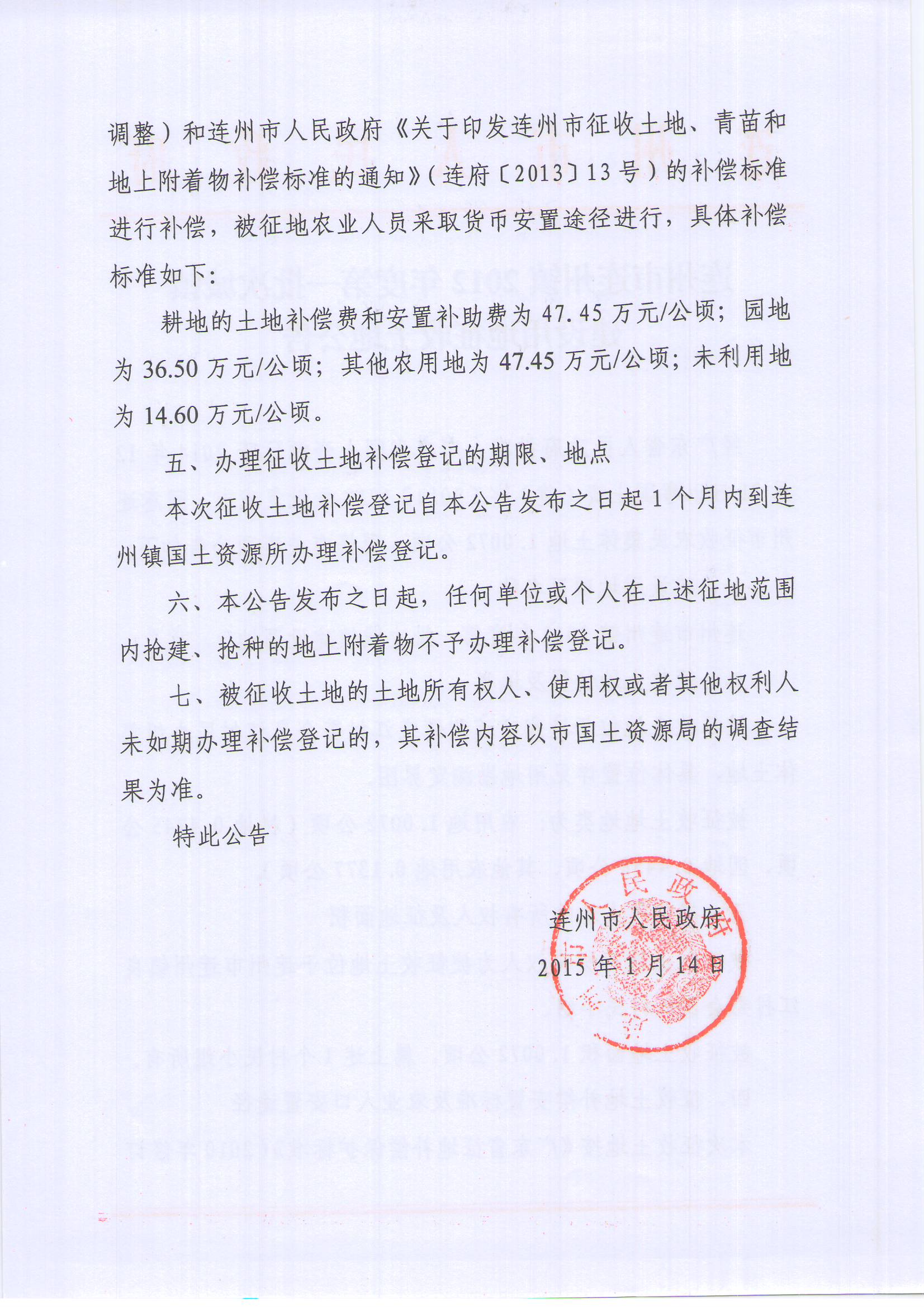 連州市連州鎮(zhèn)2012年度第一批次城鎮(zhèn)建設(shè)用地征收土地公告