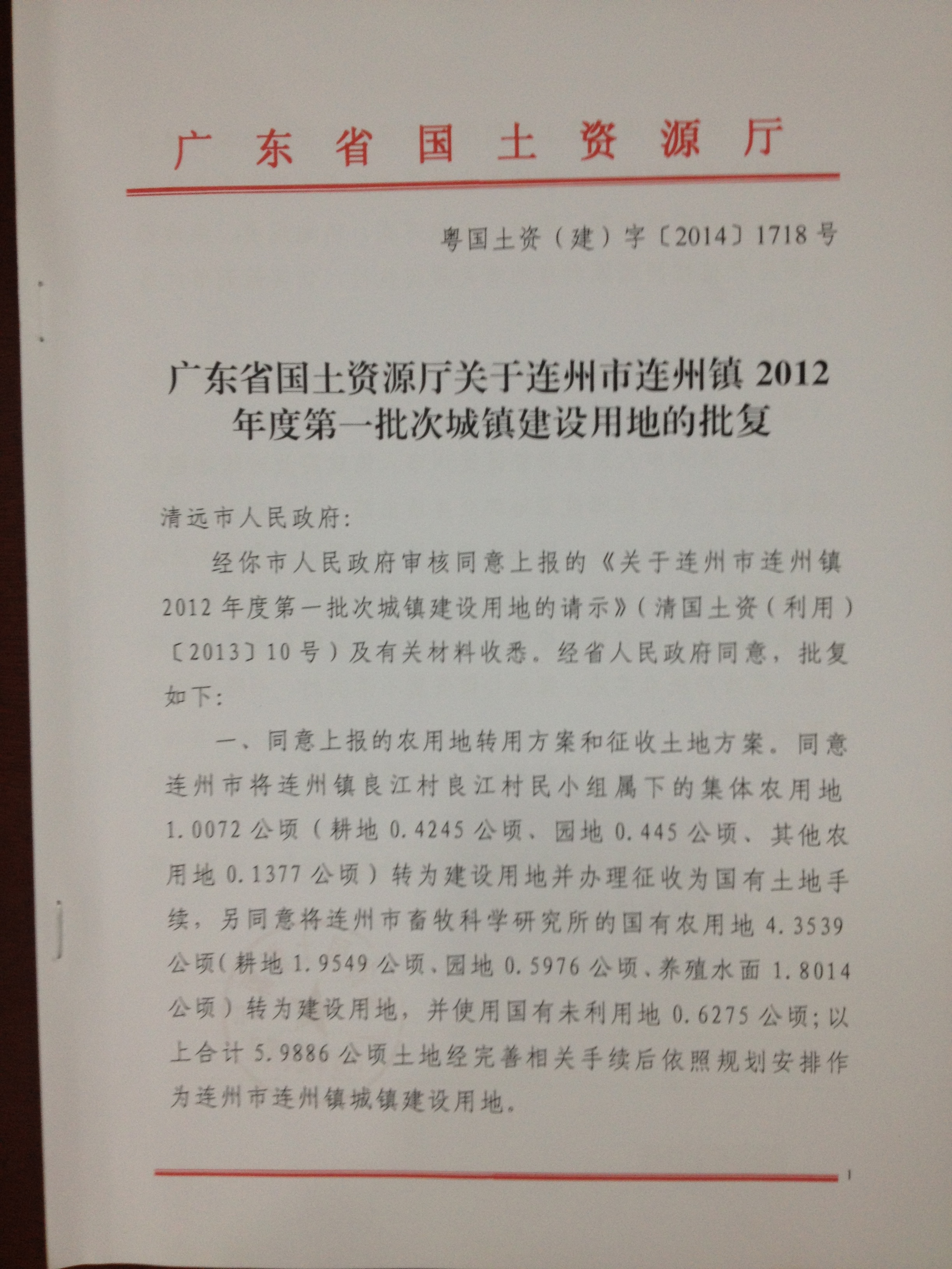 連州市連州鎮(zhèn)2012年度第一批次城鎮(zhèn)建設(shè)用地征地批準信息