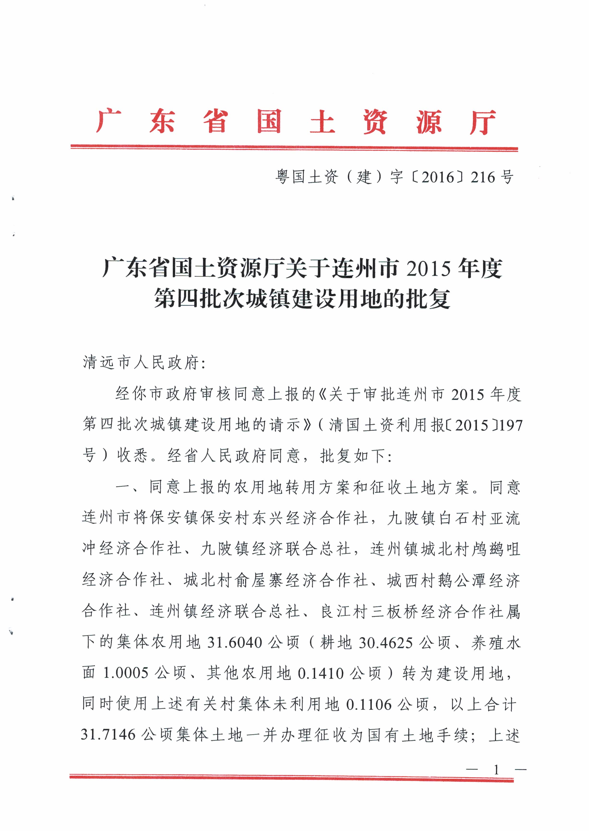 連州市2015年度第四批次城鎮(zhèn)建設(shè)用地的批復(fù)