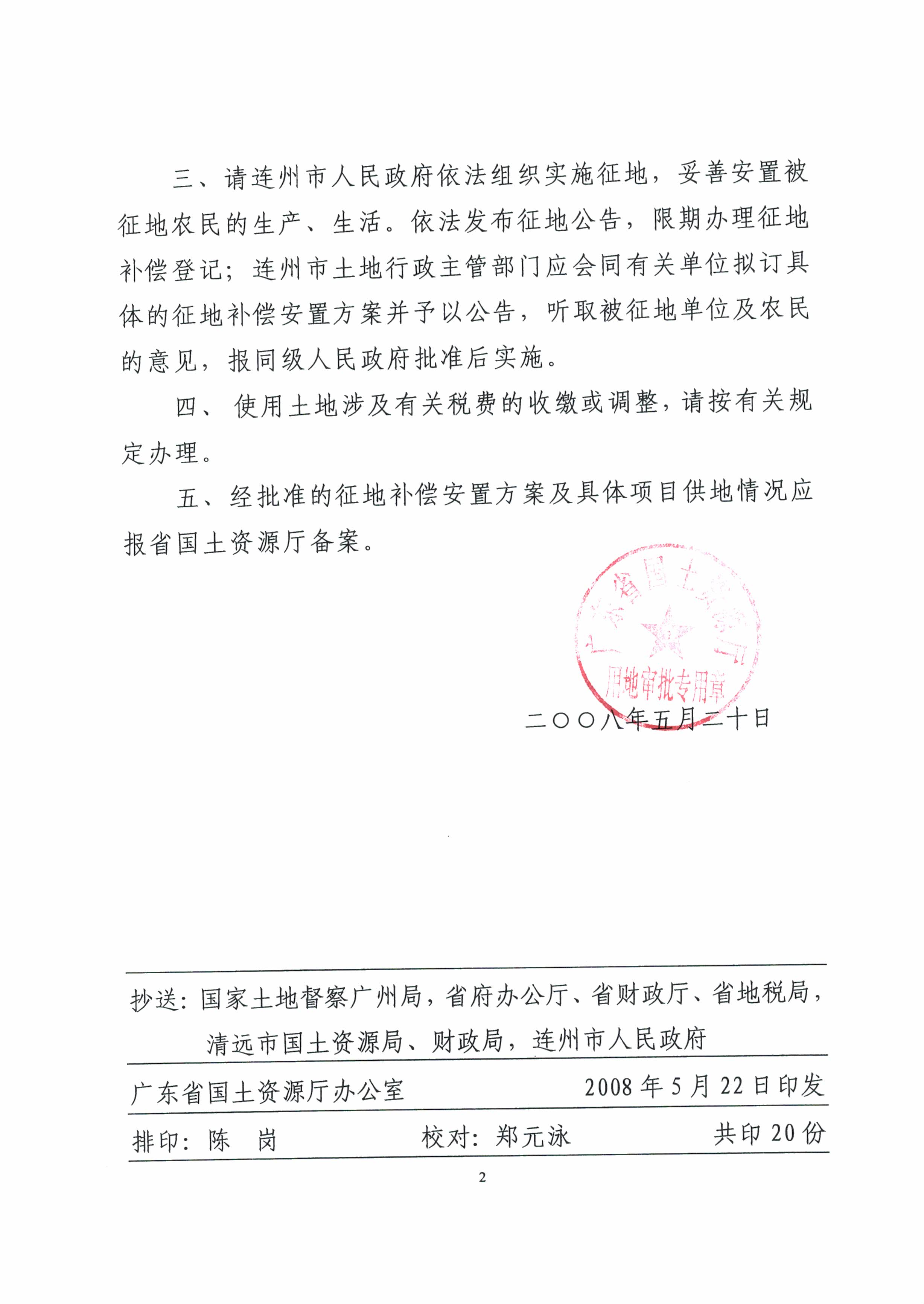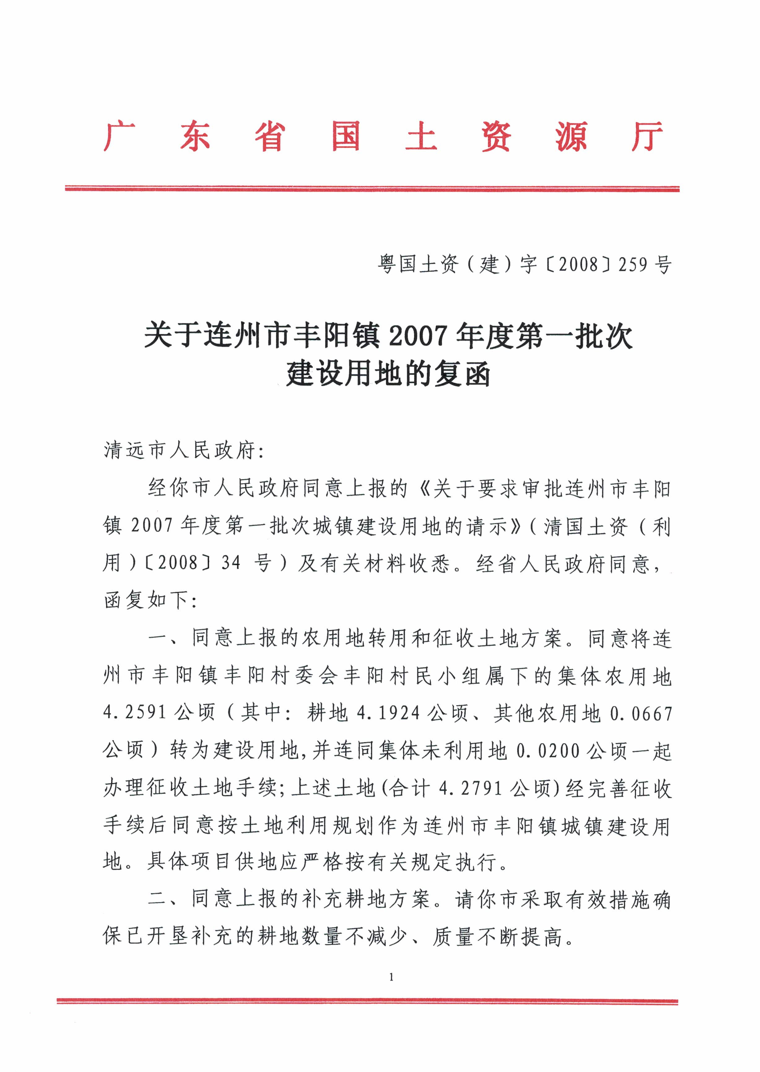 連州市豐陽(yáng)鎮(zhèn)2007年度第一批次建設(shè)用地的批復(fù)