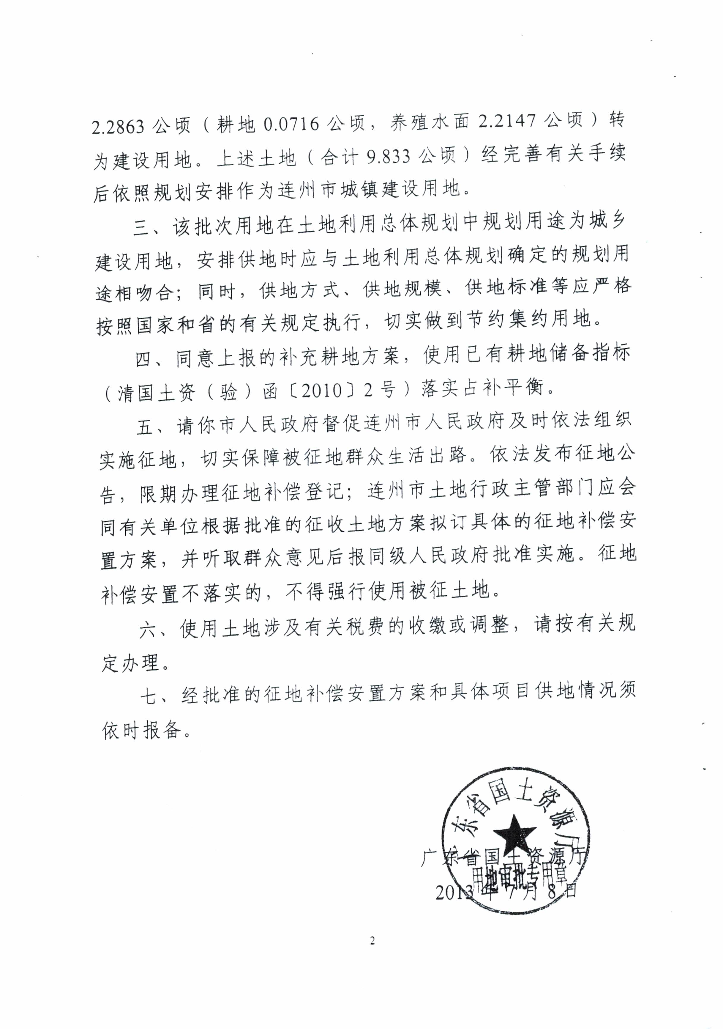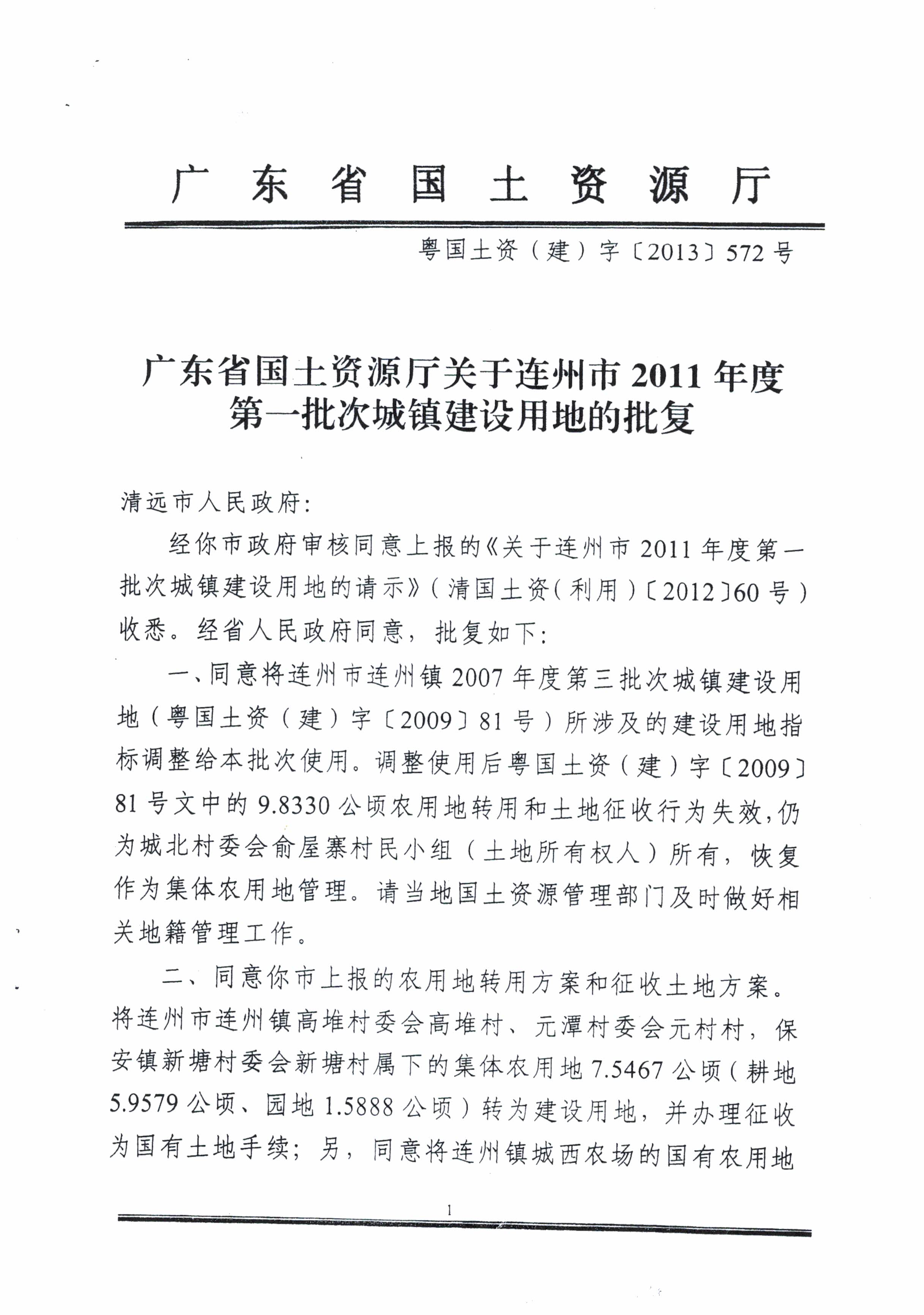 連州市2011年度第一批次城鎮(zhèn)建設(shè)用地的批復