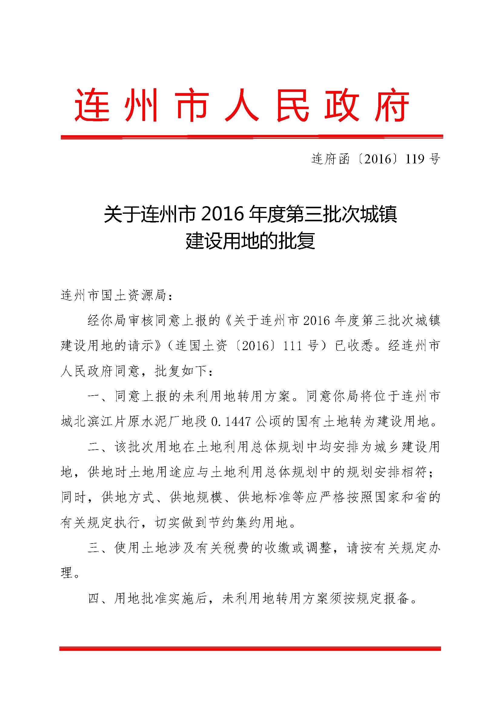 連州市2016年度第三批次城鎮(zhèn)建設(shè)用地的批復(fù)