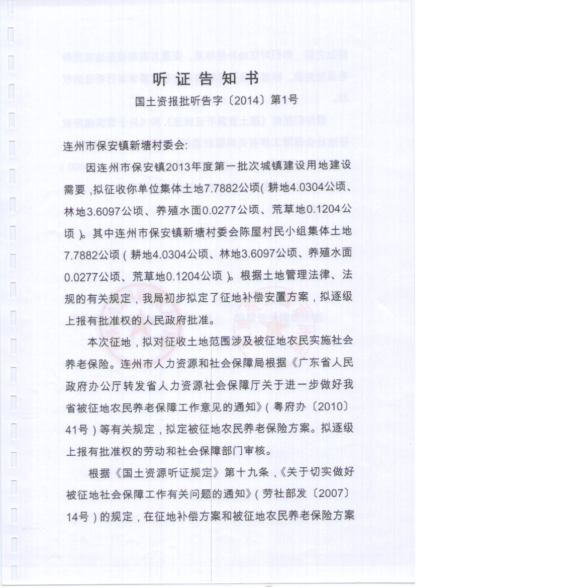 連州市保安鎮(zhèn)2013年度第一批次城鎮(zhèn)建設(shè)用地聽證信息