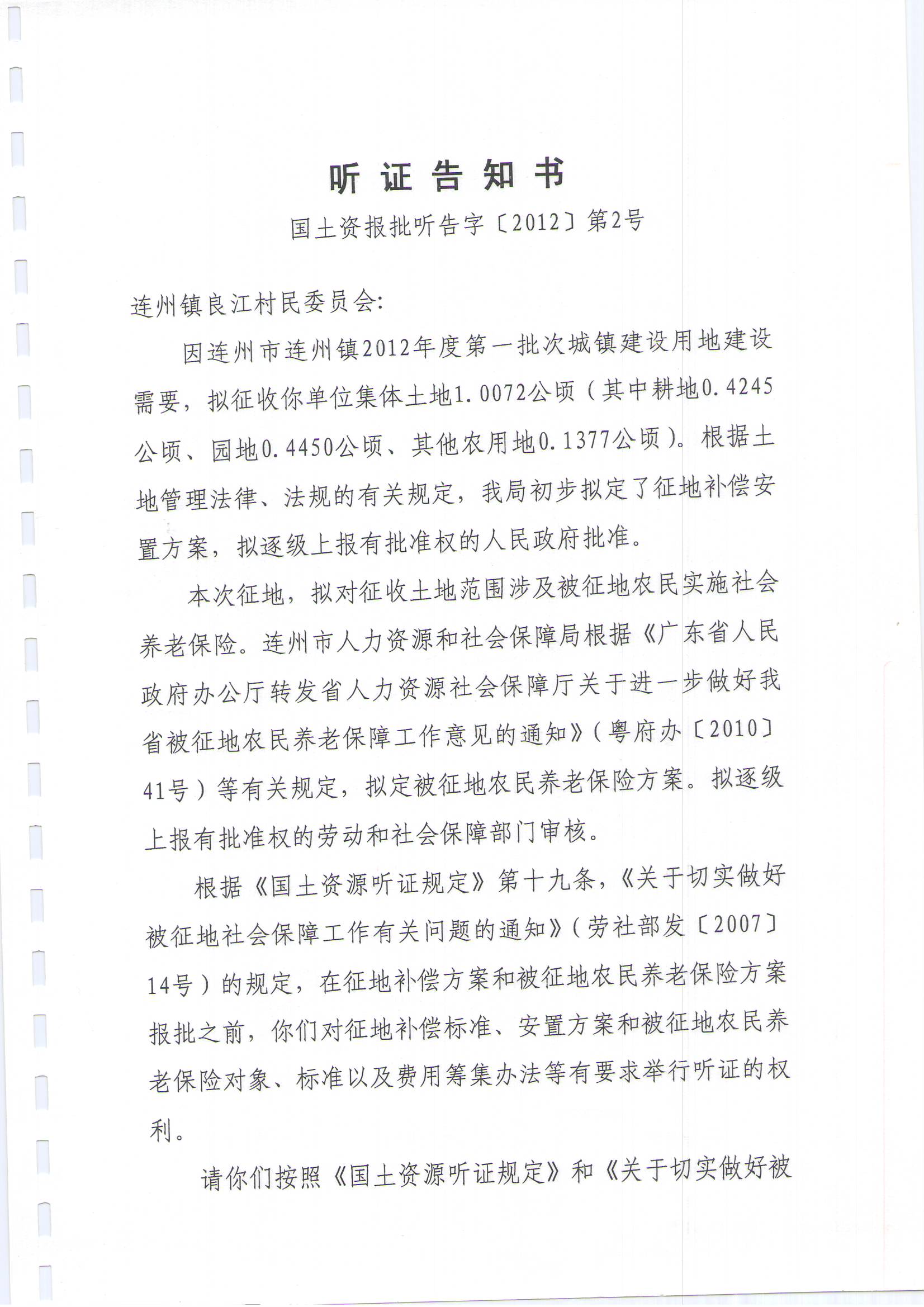 連州市連州鎮(zhèn)2012年度第一批次城鎮(zhèn)建設(shè)用地征地聽(tīng)證信息