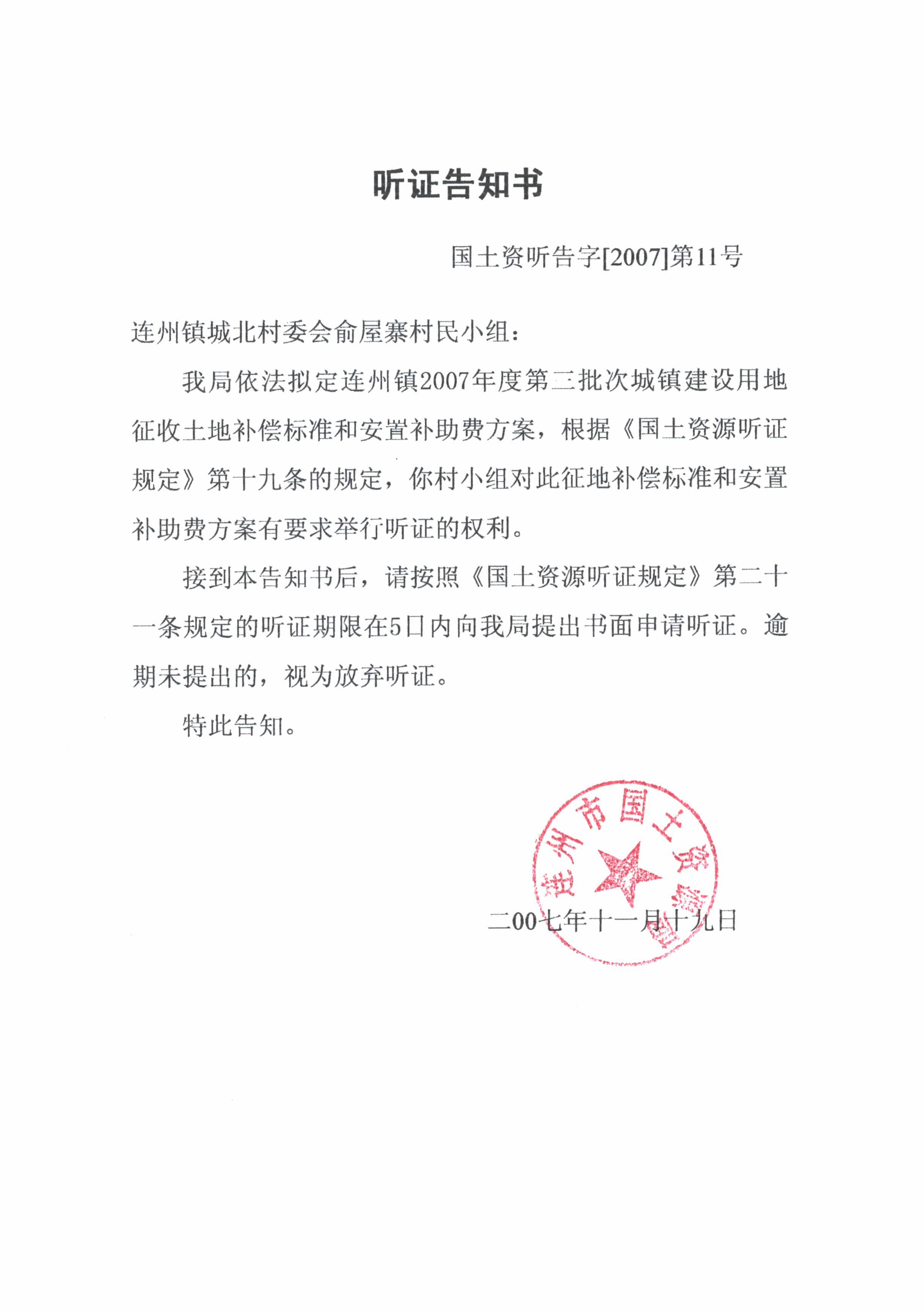 關于連州市連州鎮(zhèn)2007第三批次城鎮(zhèn)建設用地的征地聽證信息