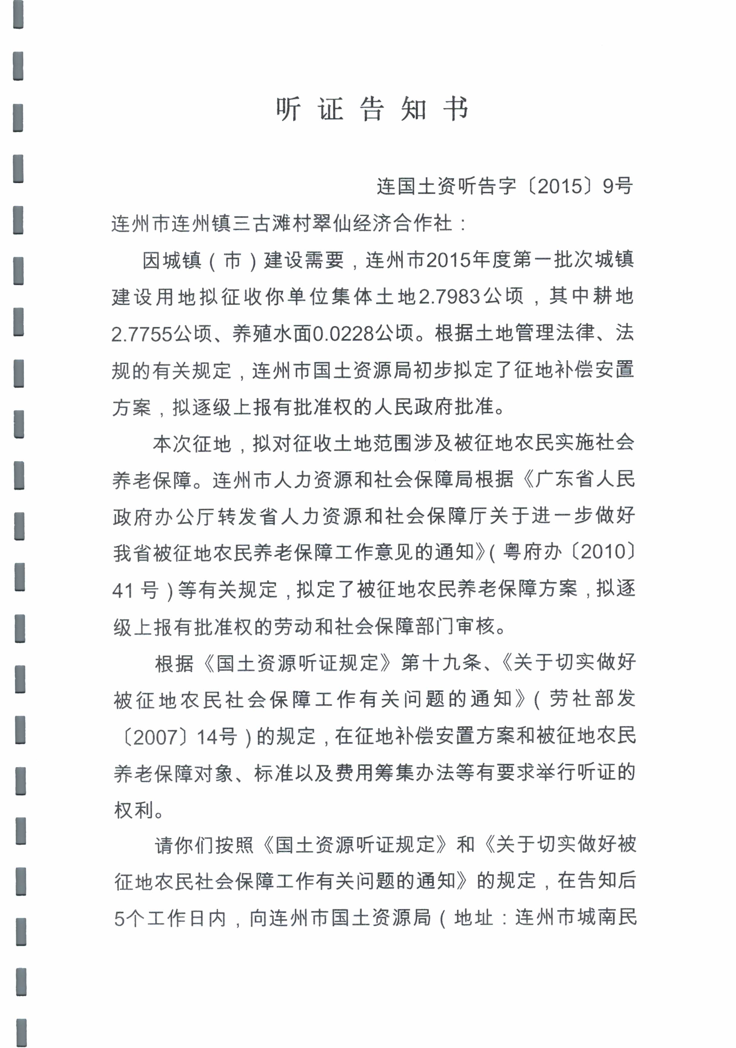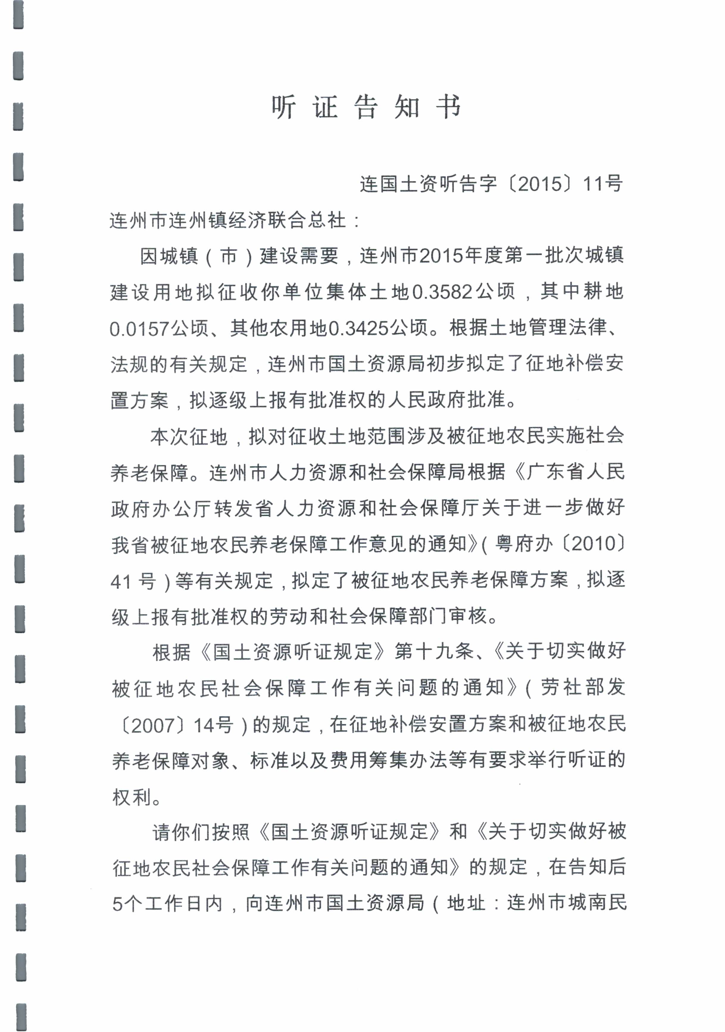 連州市2015年度第一批次城鎮(zhèn)建設用地聽證信息