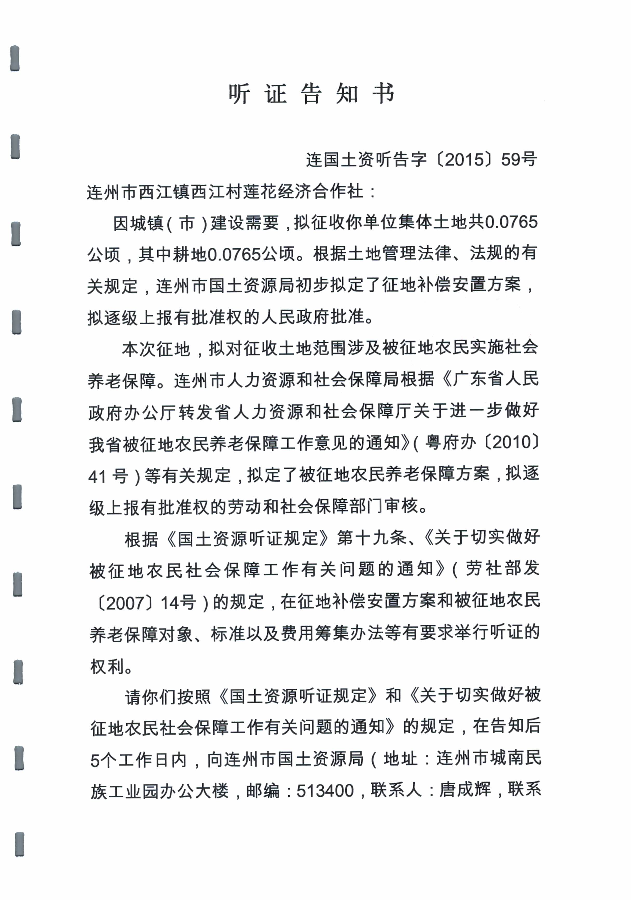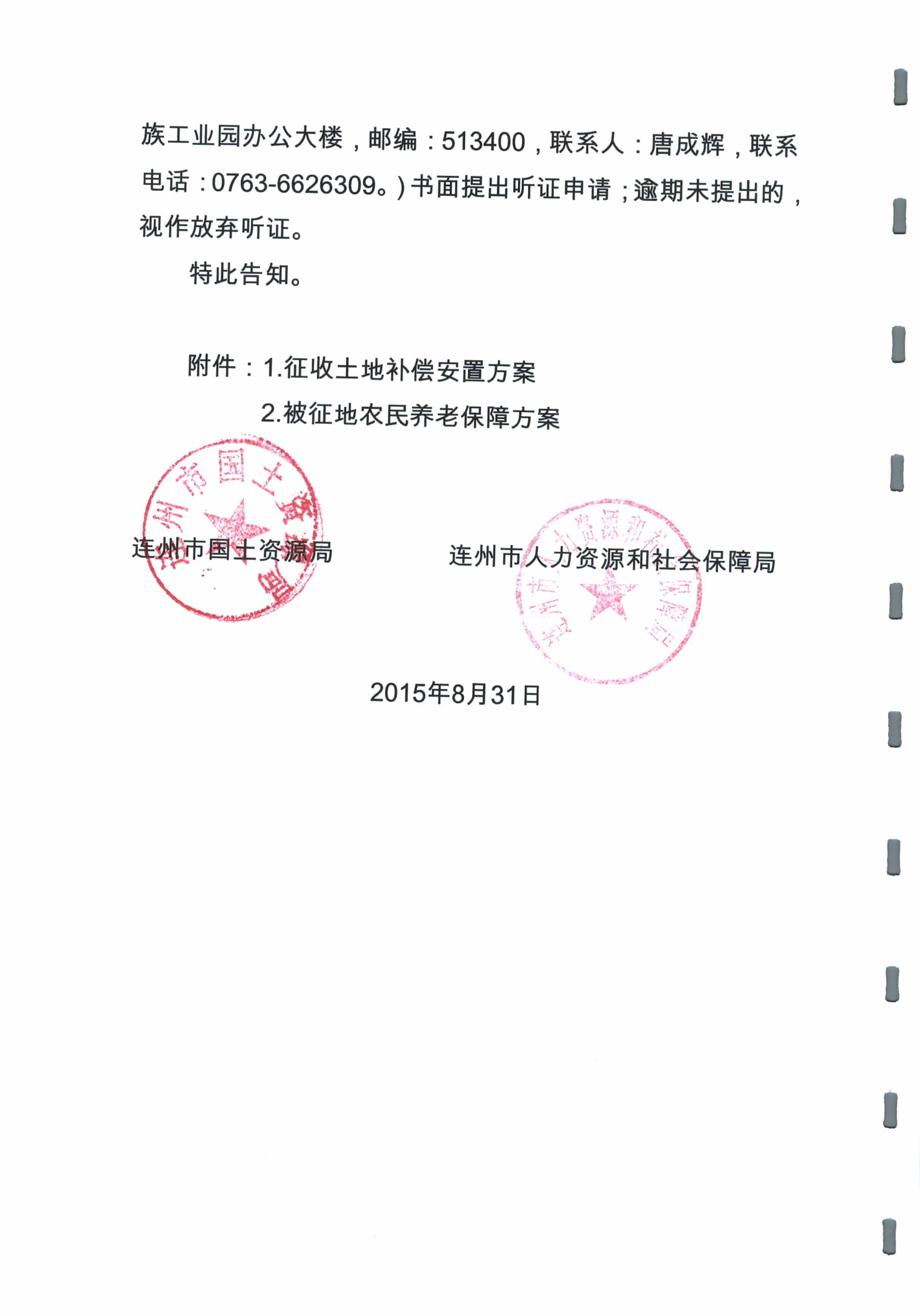 連州市2014年度第二批次城鎮(zhèn)建設(shè)用地聽證信息