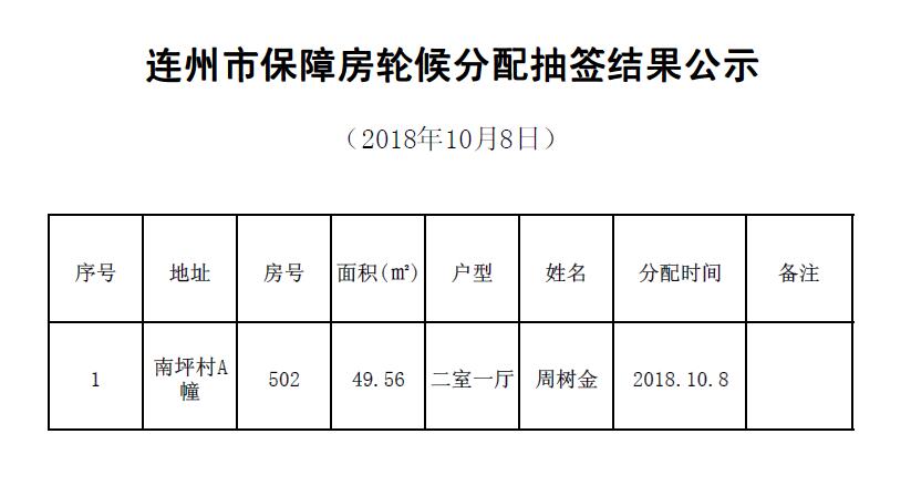 連州市保障房輪候分配抽簽結果公示(2018-10-8)