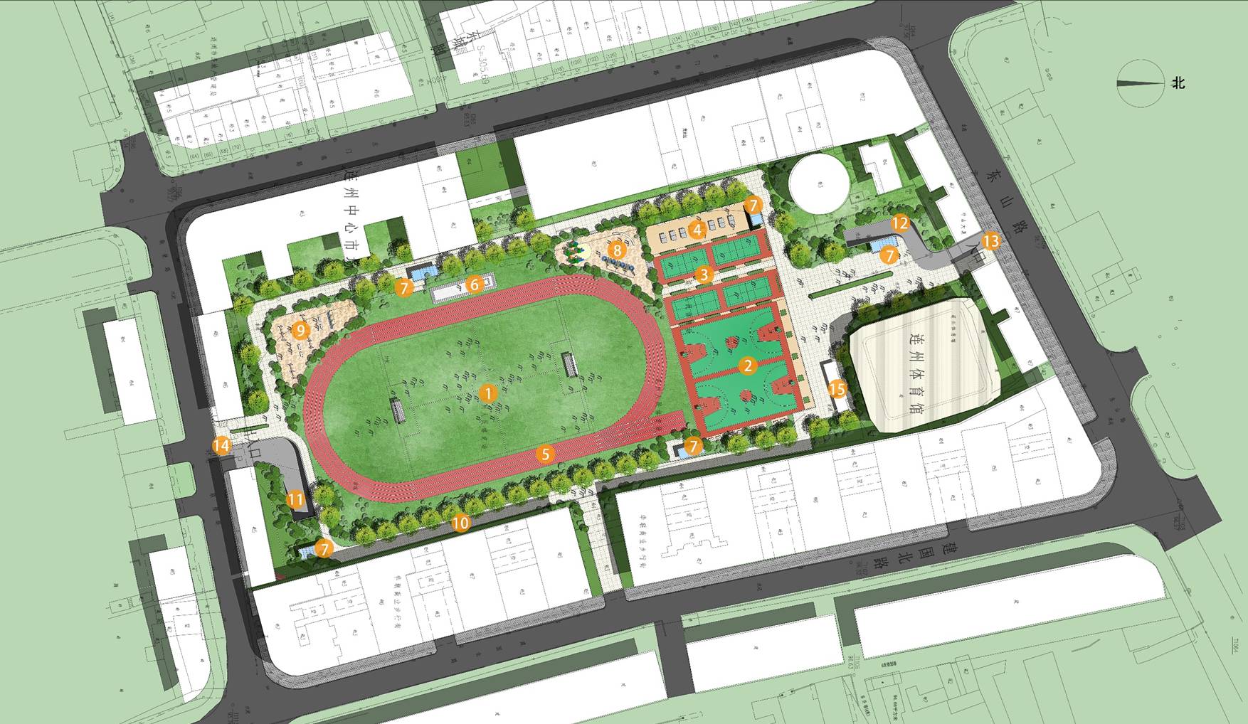 為了改善舊城區(qū)社區(qū)體育公園和解決停車(chē)難問(wèn)題,現(xiàn)規(guī)劃改造使用率較低的東較場(chǎng)地塊。改建方案采用地面建設(shè)社區(qū)體育公園,地下建設(shè)停車(chē)場(chǎng)的方式,地面規(guī)劃建設(shè)一個(gè)250米跑道的標(biāo)準(zhǔn)運(yùn)動(dòng)場(chǎng)、兩個(gè)標(biāo)準(zhǔn)室外籃球場(chǎng)、四個(gè)標(biāo)準(zhǔn)室外羽毛球場(chǎng)、部分乒乓球場(chǎng)和健身康體設(shè)施,地下結(jié)合我市地下人防設(shè)施工程建設(shè)停車(chē)場(chǎng),地下停車(chē)場(chǎng)出入口分別位于東山路和聯(lián)壁路,可解決停車(chē)位約370個(gè)(具體方案詳見(jiàn)附圖)。
