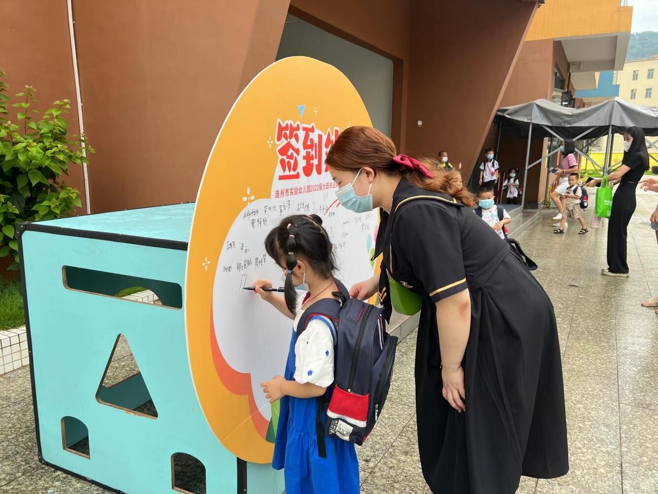 第一個(gè)環(huán)節(jié):成長(zhǎng)之門——孩子們?cè)诋厴I(yè)簽名墻上寫下自己的名字,將幼兒園的美好時(shí)光留下特殊的印記,難忘的瞬間。