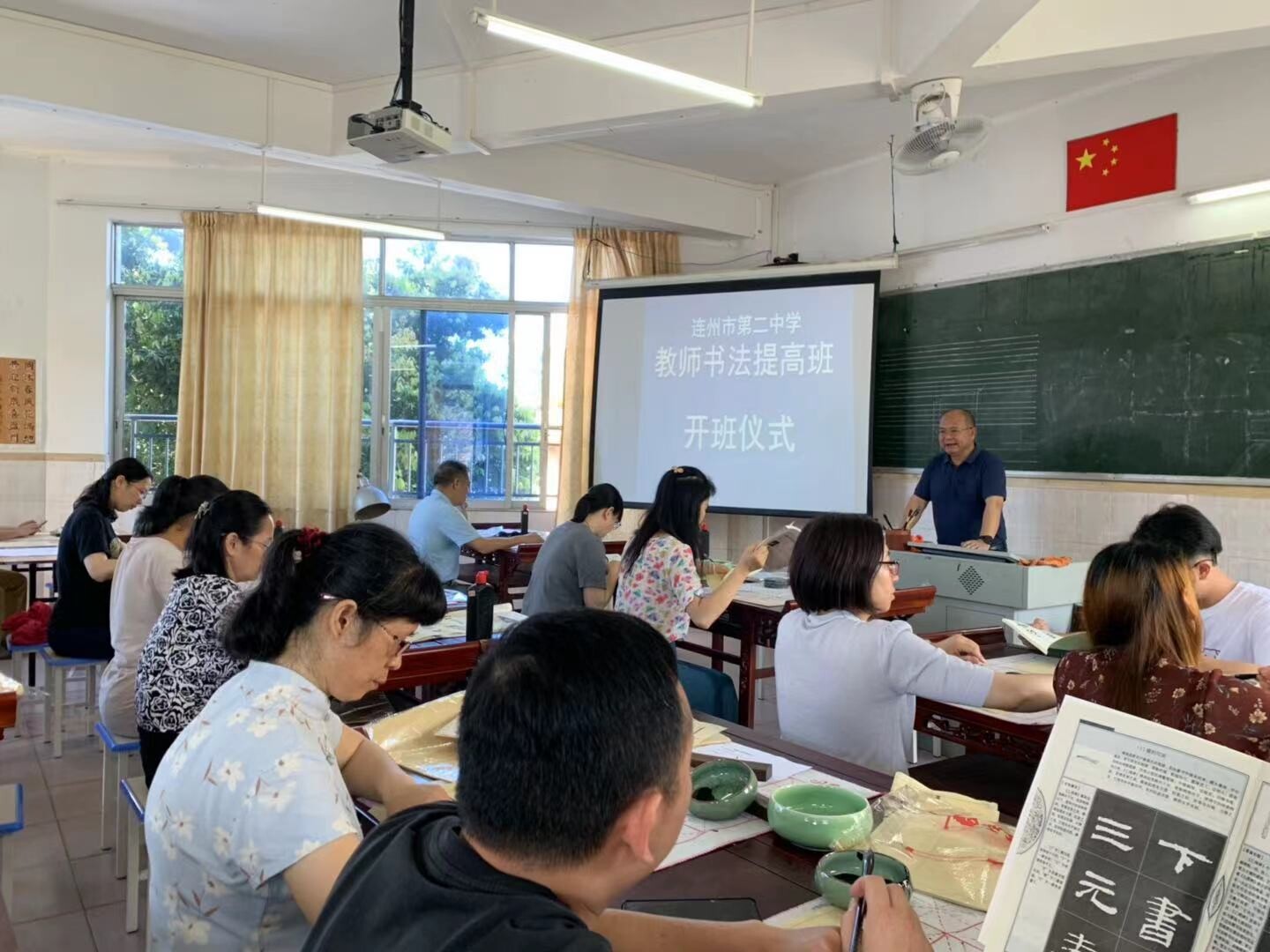 為提高我校教師的書法書寫技能和書法藝術(shù)的欣賞水平,于2021年5月26日上午9時,連州市第二中學(xué)教師書法提高班在藝術(shù)樓401書法教室舉行了開班儀式。書法小組組長李科明校長就本次學(xué)習(xí)的目的和意義作了詳細(xì)說明并對以后的學(xué)習(xí)提出要求。