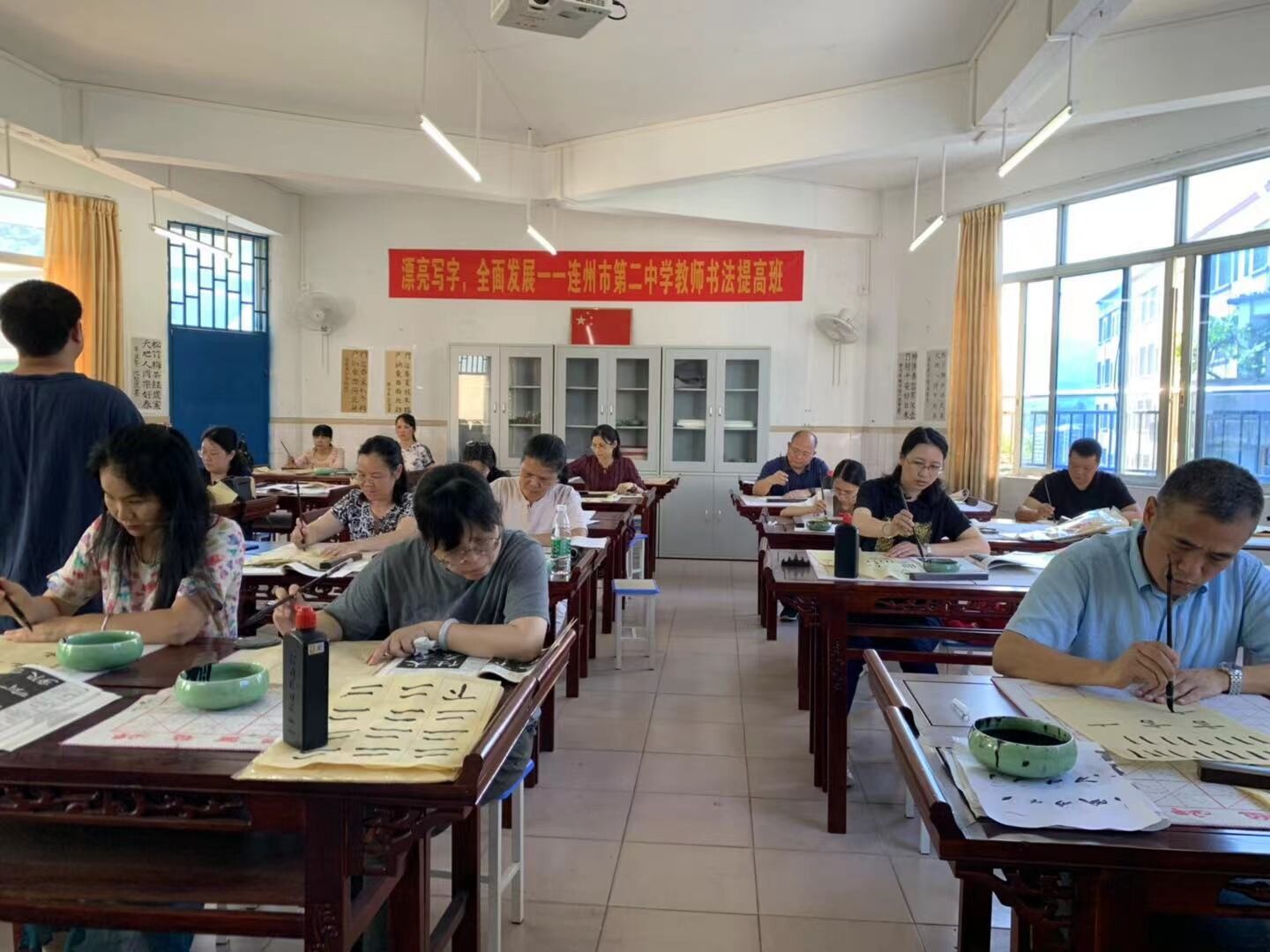老師們在認(rèn)真練習(xí)書法