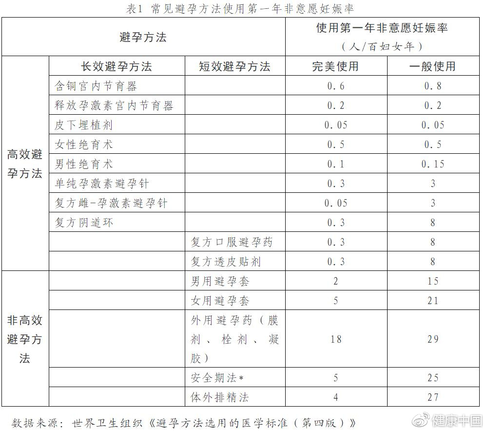 其中:“完美使用”是指始終嚴格按照產品和技術的使用說明,堅持和正確地應用某種避孕方法。