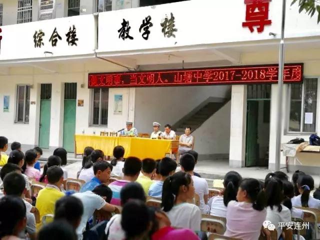 與此同時,連州市交警大隊還在9月1日這天,派出星子中隊民警來到大路邊鎮(zhèn)山塘中學(xué),為全校師生們開展了一場面對面的“交通安全第一課”宣傳教育活動。