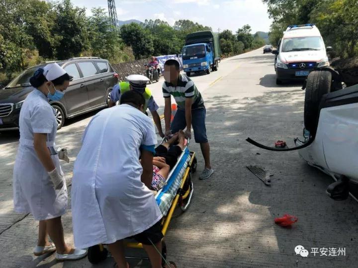 1事故現(xiàn)場總會出現(xiàn)交警忙碌的身影,國慶節(jié)這天,S114省道發(fā)生一起小客車側(cè)翻的交通事故,東陂中隊民警與醫(yī)務(wù)人員一起搶救傷者。