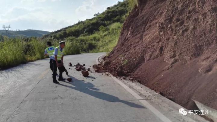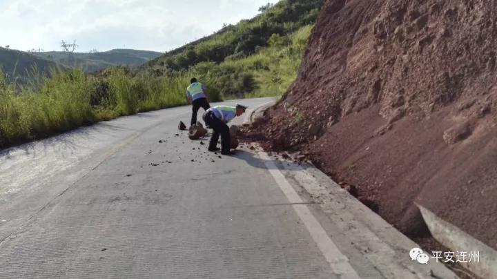 2星子中隊加強假日期間的路面巡邏管控,執(zhí)勤交警發(fā)現(xiàn)公路邊坡塌方落石,立即徒手清理公路上的落石,及時消除事故隱患