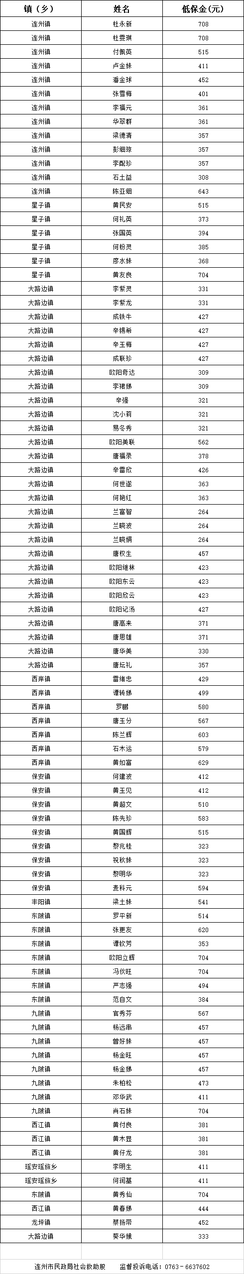 2023年11月取消低保對象名單
