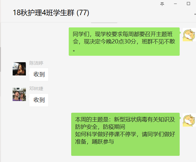 3月8號(hào)下午,廣東省連州衛(wèi)生學(xué)校組織全校班主任通過(guò)網(wǎng)絡(luò)召開(kāi)內(nèi)容為“新型冠狀病毒有關(guān)知識(shí)及防護(hù)安全”及“防疫期間如何科學(xué)做好停課不停學(xué)”的主題班會(huì)第一課,讓學(xué)生了解新型冠狀病毒的相關(guān)知識(shí),做好相應(yīng)的疫情防護(hù)工作,讓學(xué)生在疫情期間的安心學(xué)習(xí)和健康生活。全體學(xué)生參加了本次線上主題班會(huì)。