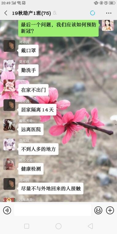 各班的同學(xué),經(jīng)過(guò)長(zhǎng)長(zhǎng)的假期,終于又“圍”在班主任“面前”,聆聽(tīng)班主任的教誨。有的班級(jí)在微信群中與班主任進(jìn)行即時(shí)互動(dòng),有的班主任使用騰訊會(huì)議協(xié)助,總之,新的方式,讓更多的同學(xué)更有參與的興趣與熱情。陽(yáng)春三月,雖然老師們因?yàn)橐咔槲茨茉谛@里與同學(xué)們?nèi)缙谙嘁?jiàn),但疫情阻擋不了求學(xué)的腳步。新學(xué)期伊始,以屏幕代替黑板的新的班會(huì)形式,增強(qiáng)了班主任和同學(xué)們互動(dòng)交流,擴(kuò)展了同學(xué)們面對(duì)疫情的防范知識(shí),讓學(xué)生樹(shù)立了正確的人生價(jià)值觀。此次班會(huì)也是一次生動(dòng)的思想政治教育課,教會(huì)同學(xué)們?cè)谔厥鈺r(shí)期也要積極從容面對(duì),迎接新的美好和希望。