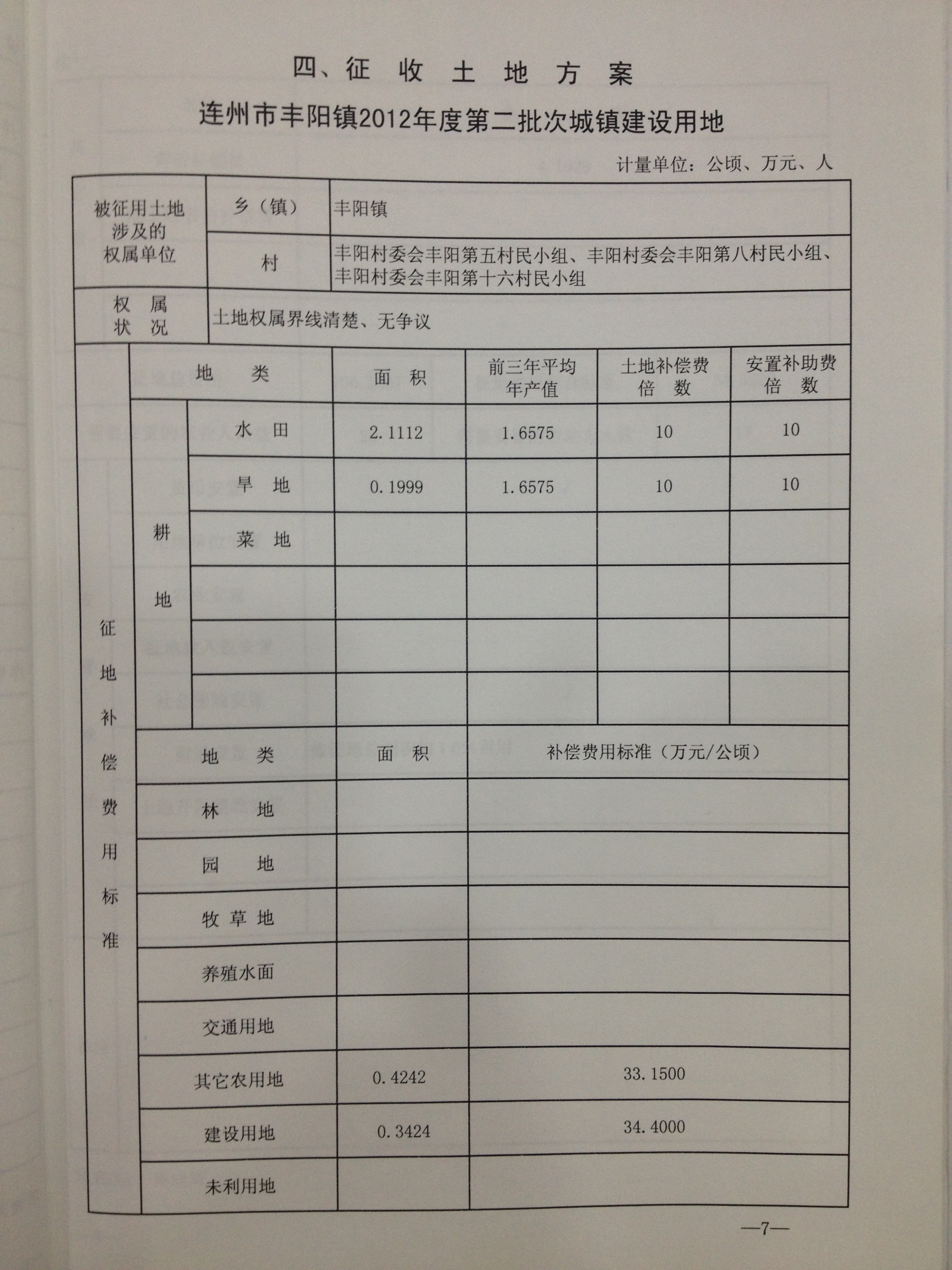 連州市豐陽(yáng)鎮(zhèn)2012年度第二批次城鎮(zhèn)建設(shè)用地征地補(bǔ)償安置方案公告信息
