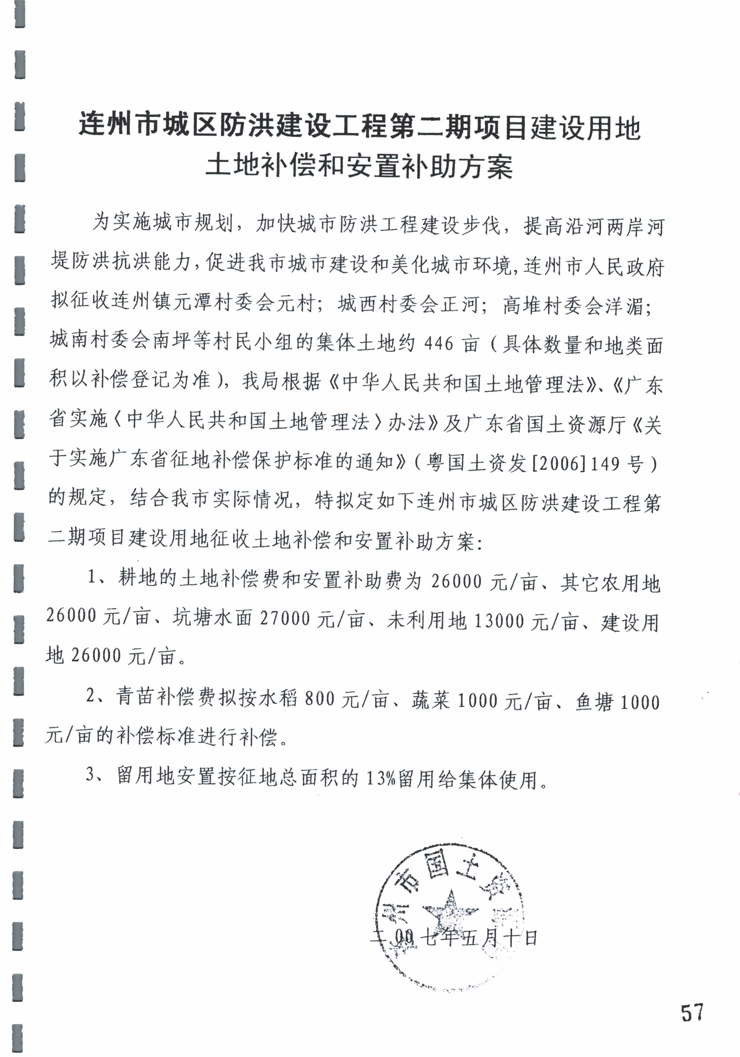 連州市城區(qū)防洪建設(shè)工程二期項(xiàng)目建設(shè)用地補(bǔ)償安置方案公告