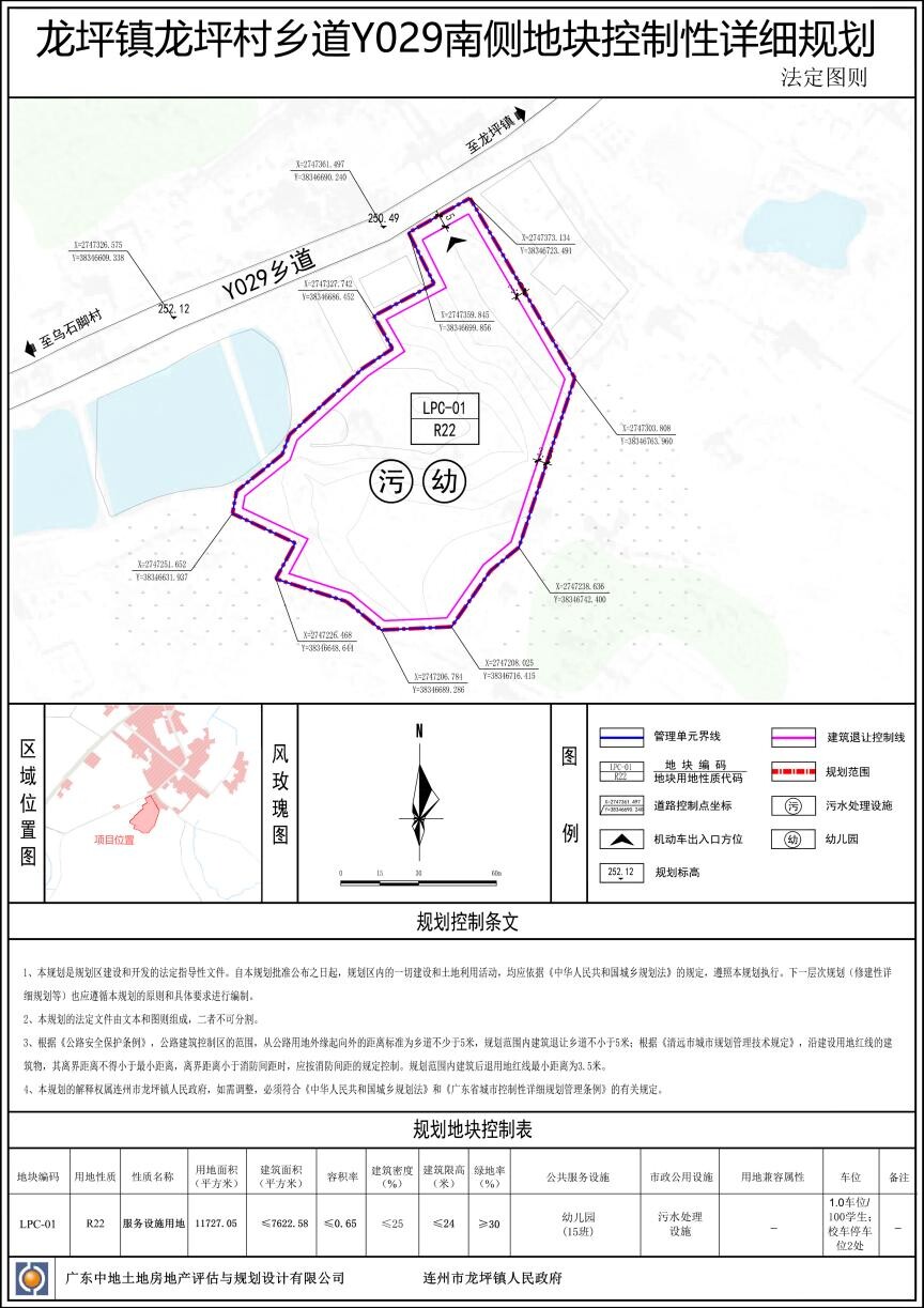 根據(jù)《中華人民共和國(guó)城鄉(xiāng)規(guī)劃法》、《廣東省城鄉(xiāng)規(guī)劃條例》的規(guī)定,現(xiàn)將《龍坪鎮(zhèn)龍坪村鄉(xiāng)道Y029南側(cè)地塊控制性詳細(xì)規(guī)劃》公示如下: